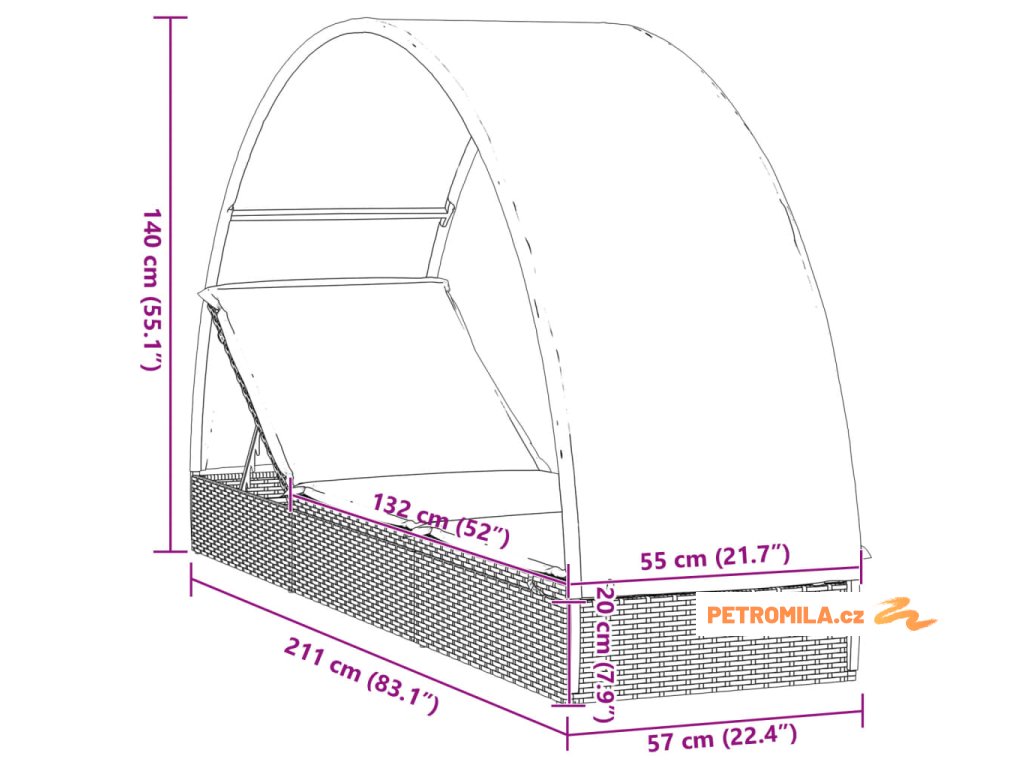 - Rozměry lehátka: 201 x 55 x 20/23/36/50/62 cm (Š x H x V)