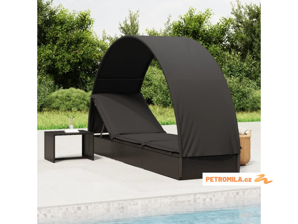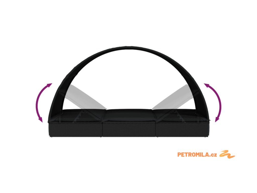 Lehátko s kulatou střechou černé 211 x 57 x 140 cm polyratan