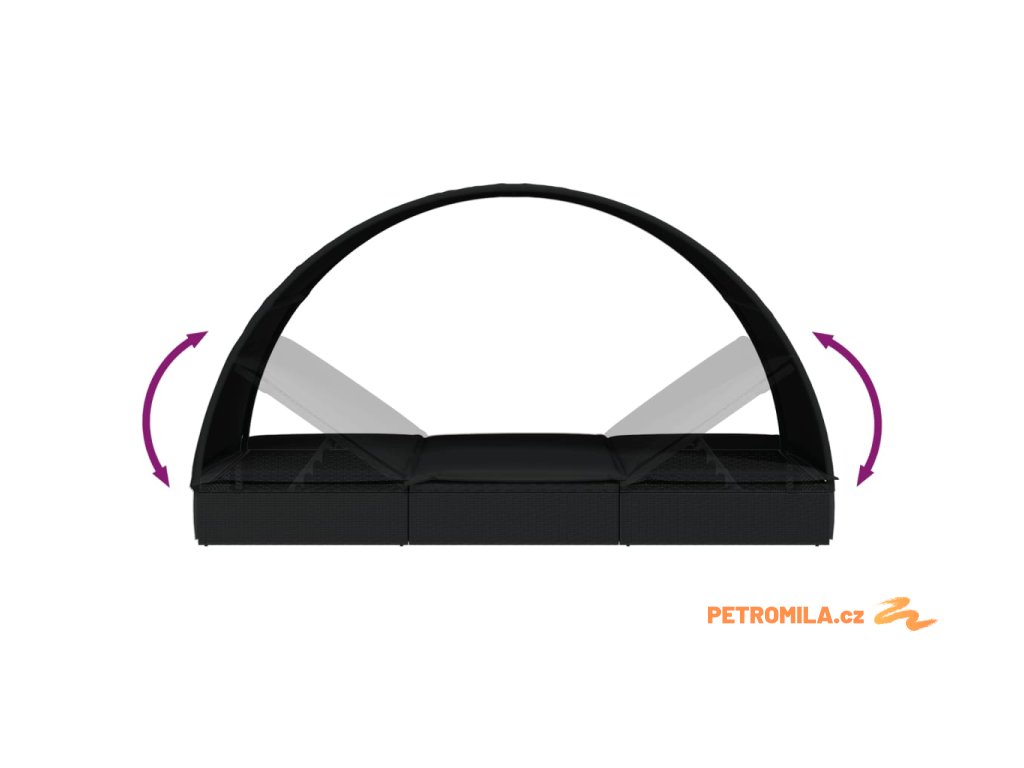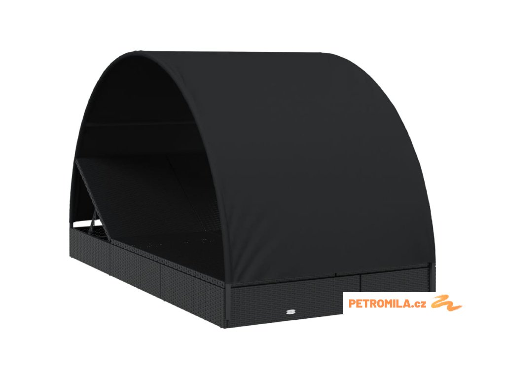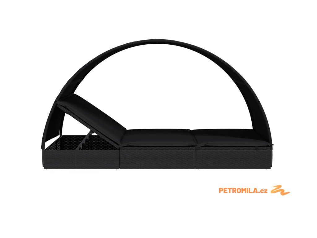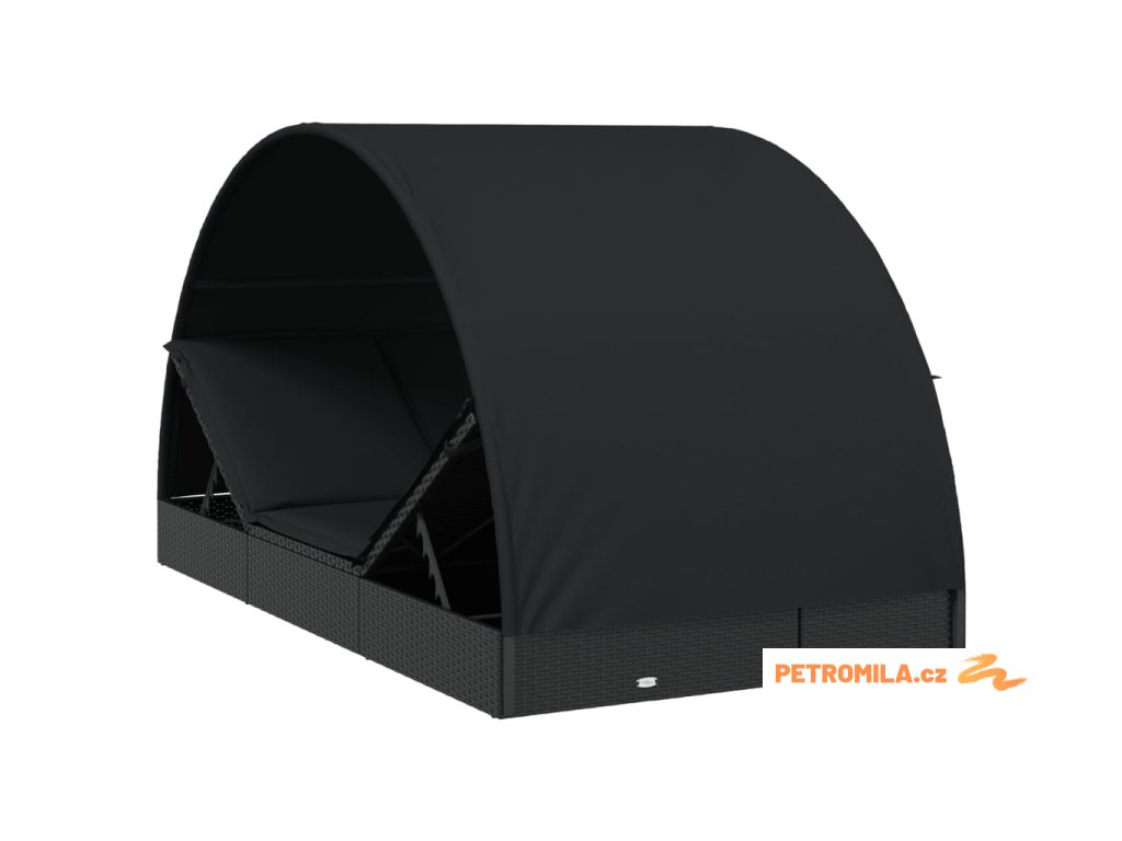 Lehátko s kulatou střechou pro 2 černé 211x112x140 cm polyratan
