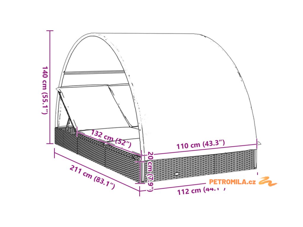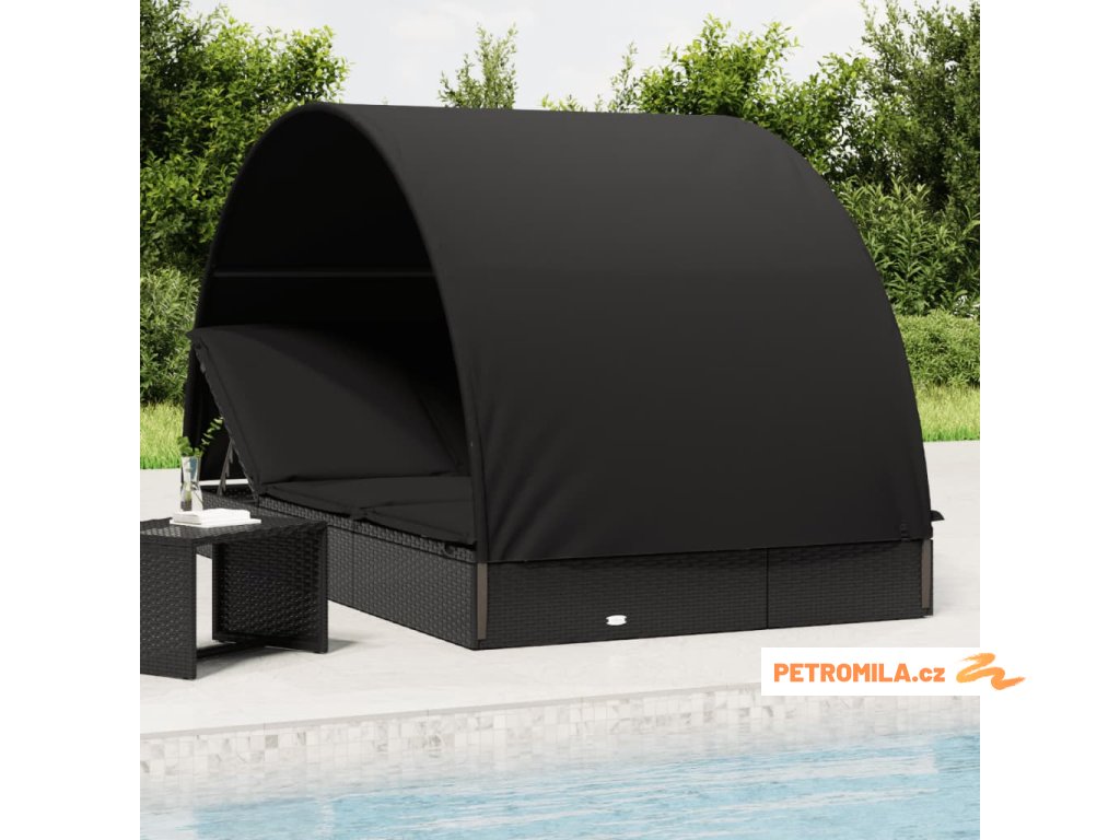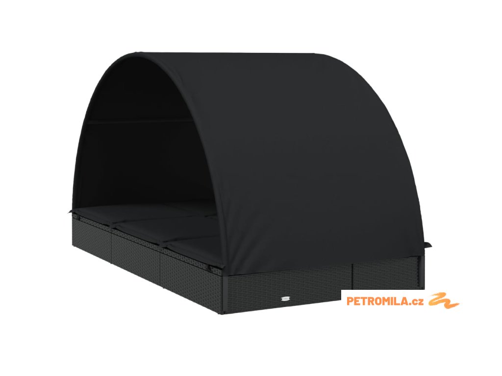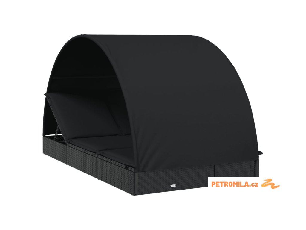 Lehátko s kulatou střechou pro 2 černé 211x112x140 cm polyratan
