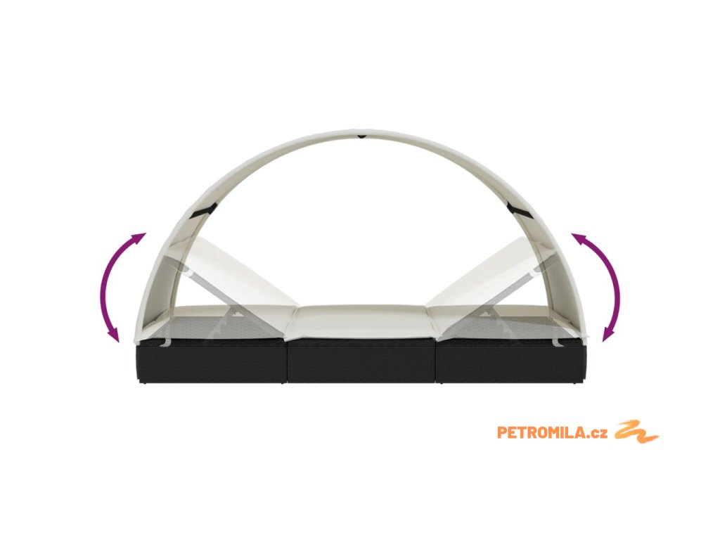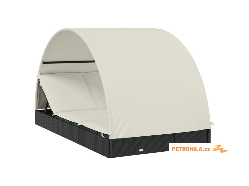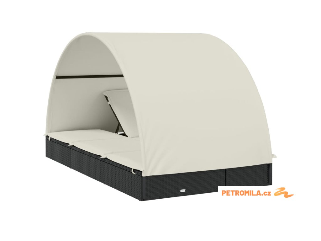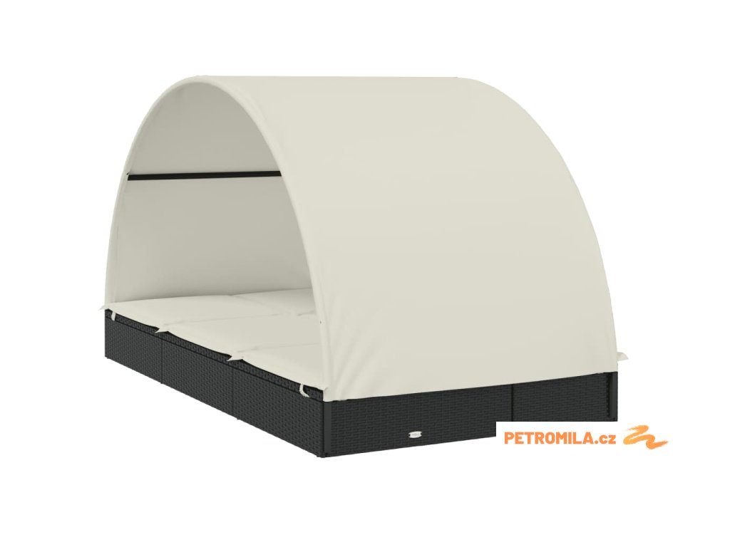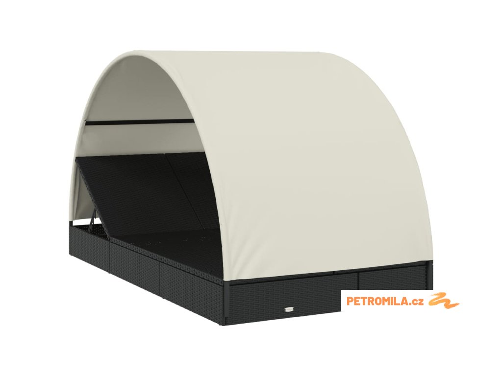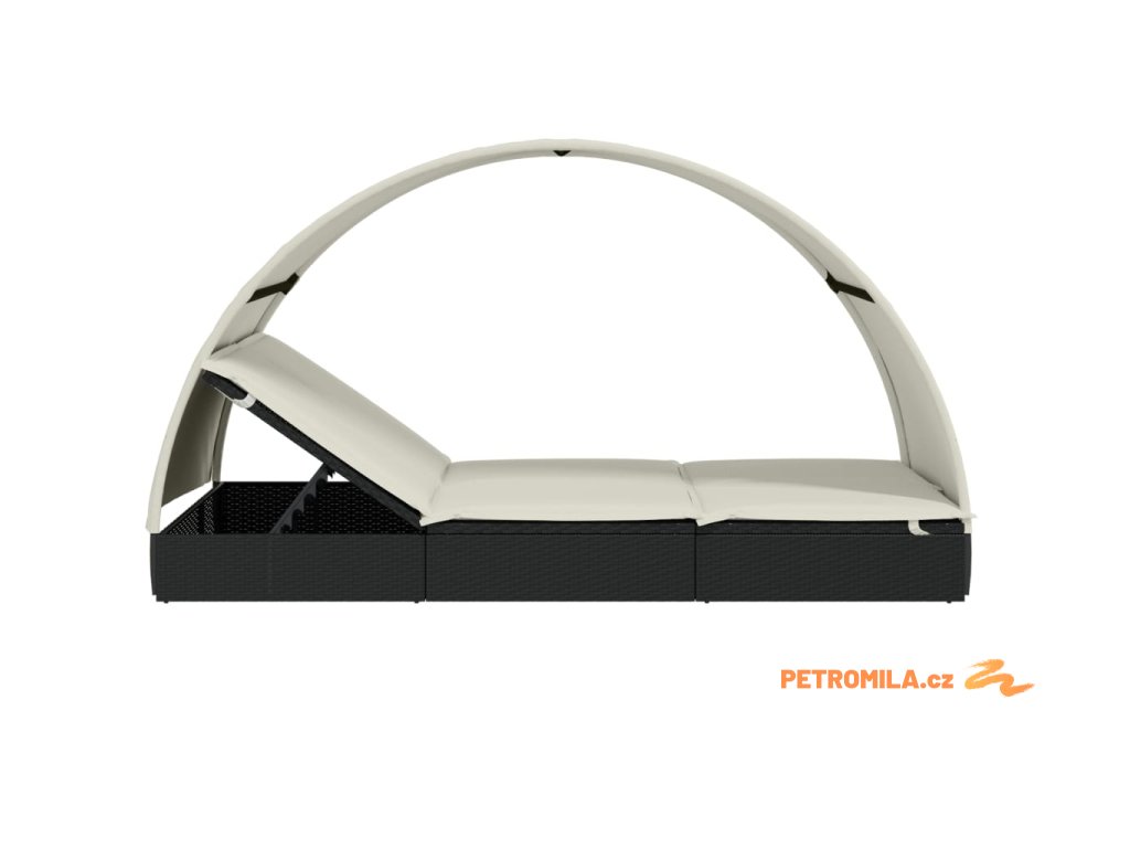 Lehátko s kulatou střechou pro 2 černé 211x112x140 cm polyratan