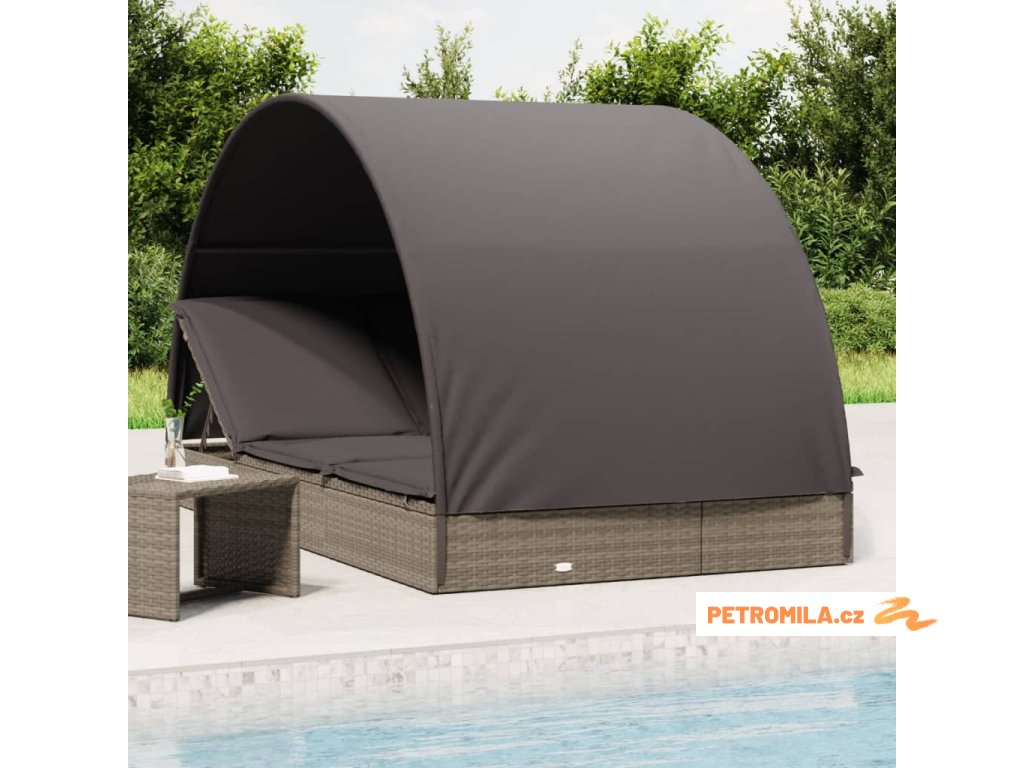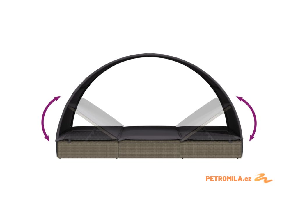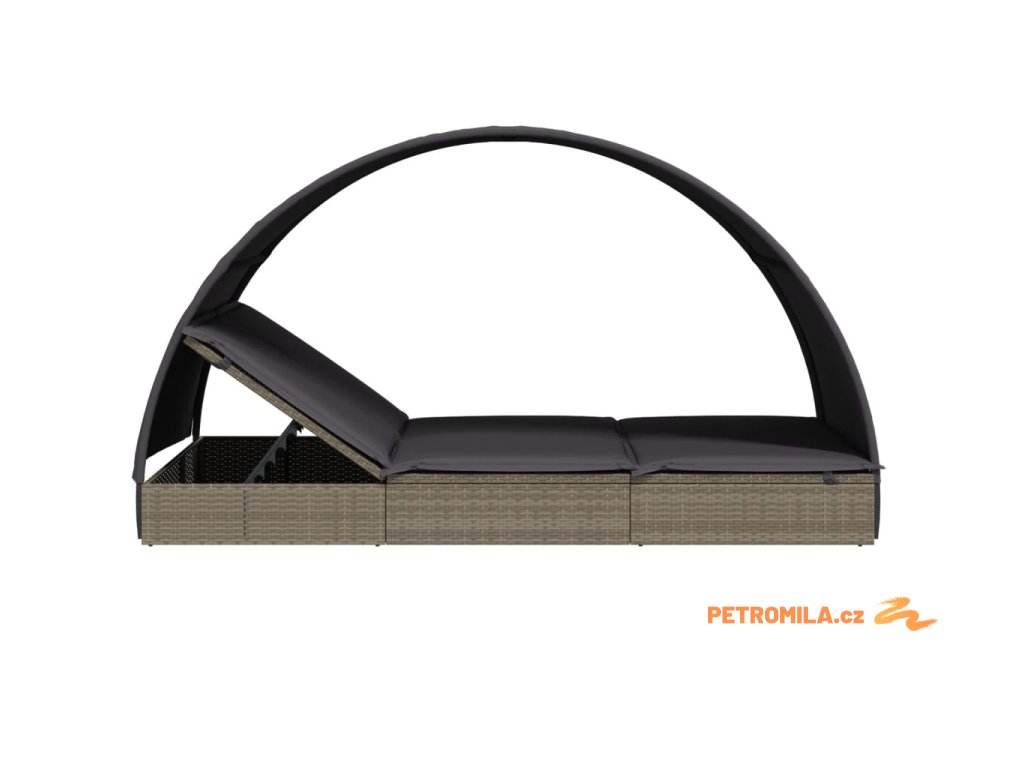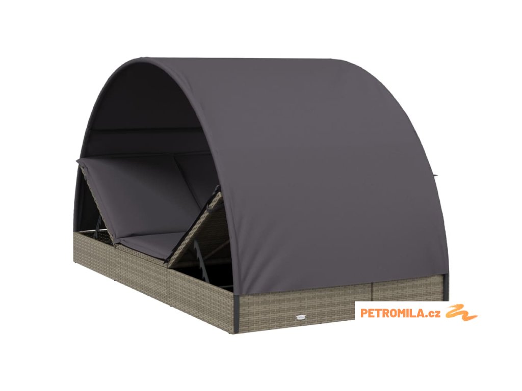 Lehátko s kulatou střechou pro 2 šedé 211x112x140 cm polyratan
