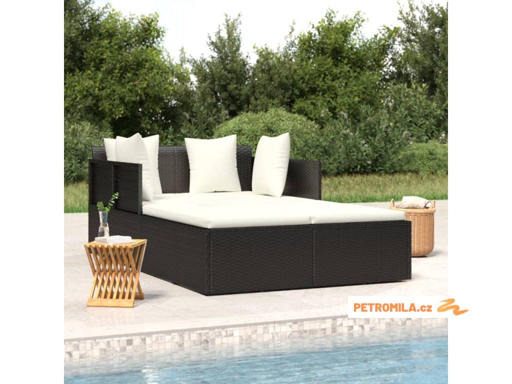 Lehátko s poduškami černé 182 x 118 x 63 cm polyratan