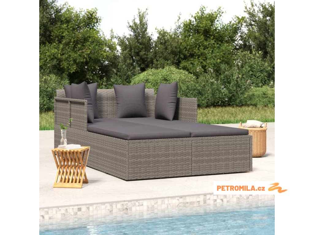 Lehátko s poduškami šedé 182 x 118 x 63 cm polyratan
