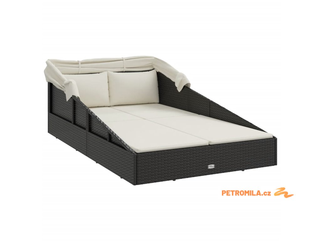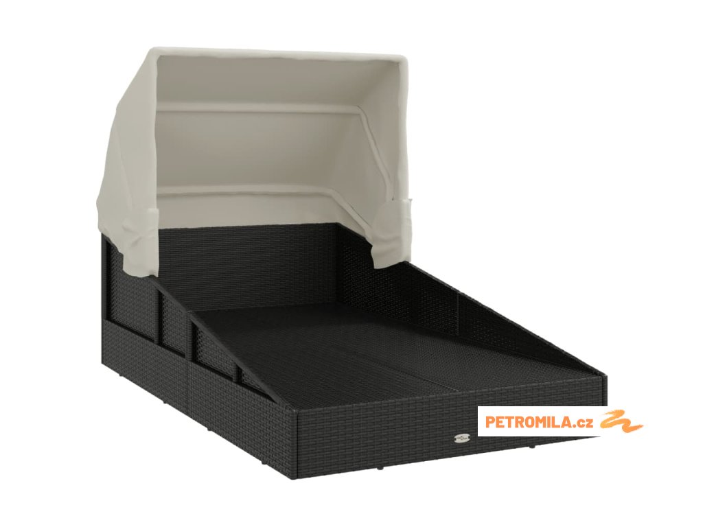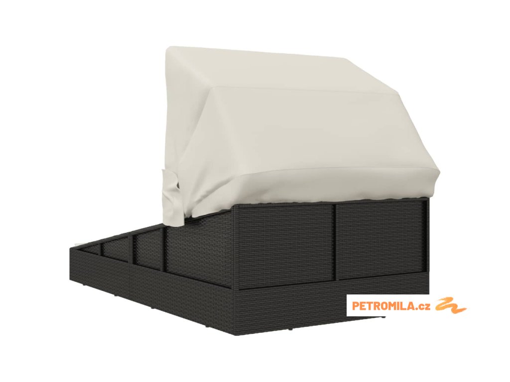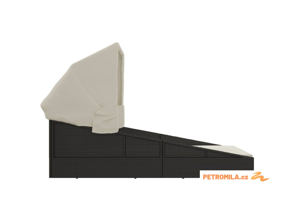 Lehátko se skládací střechou černé 200 x 114 x 128 cm polyratan