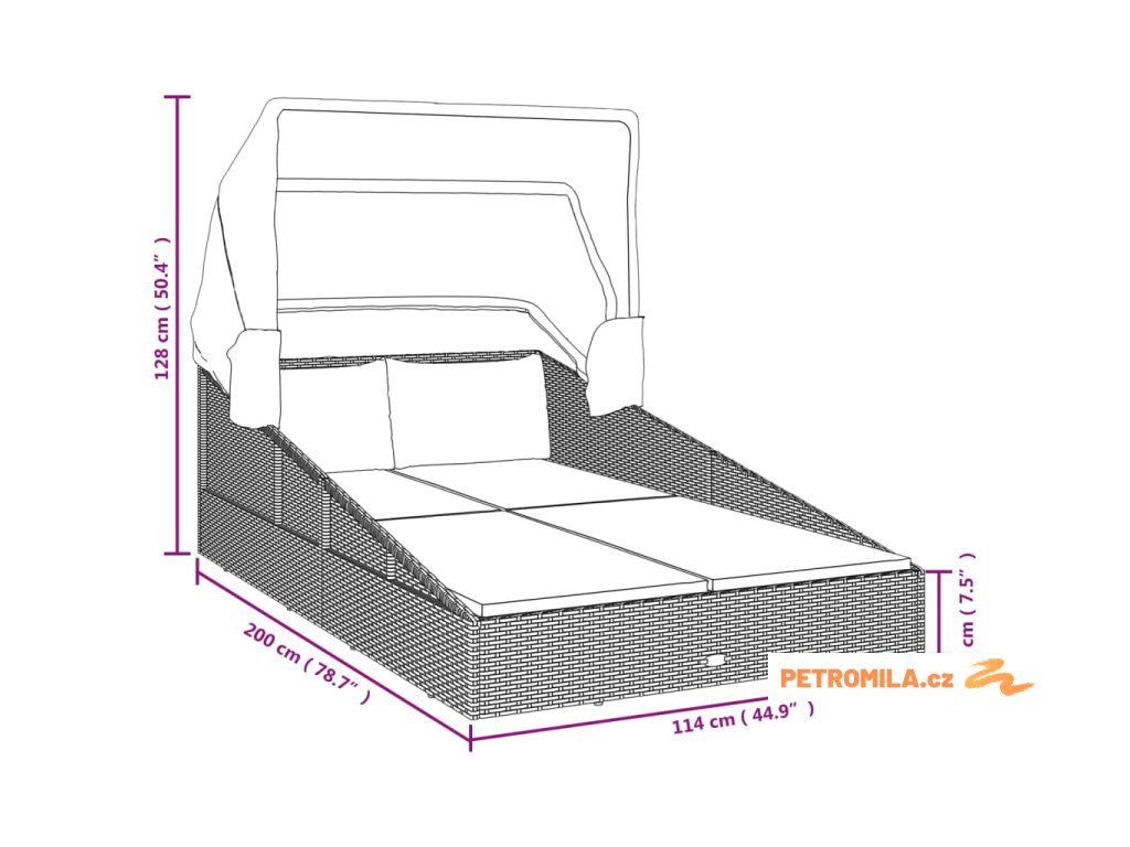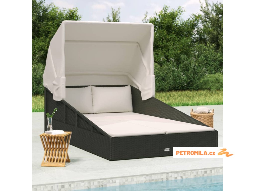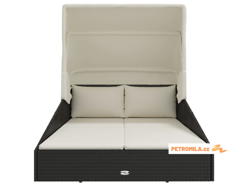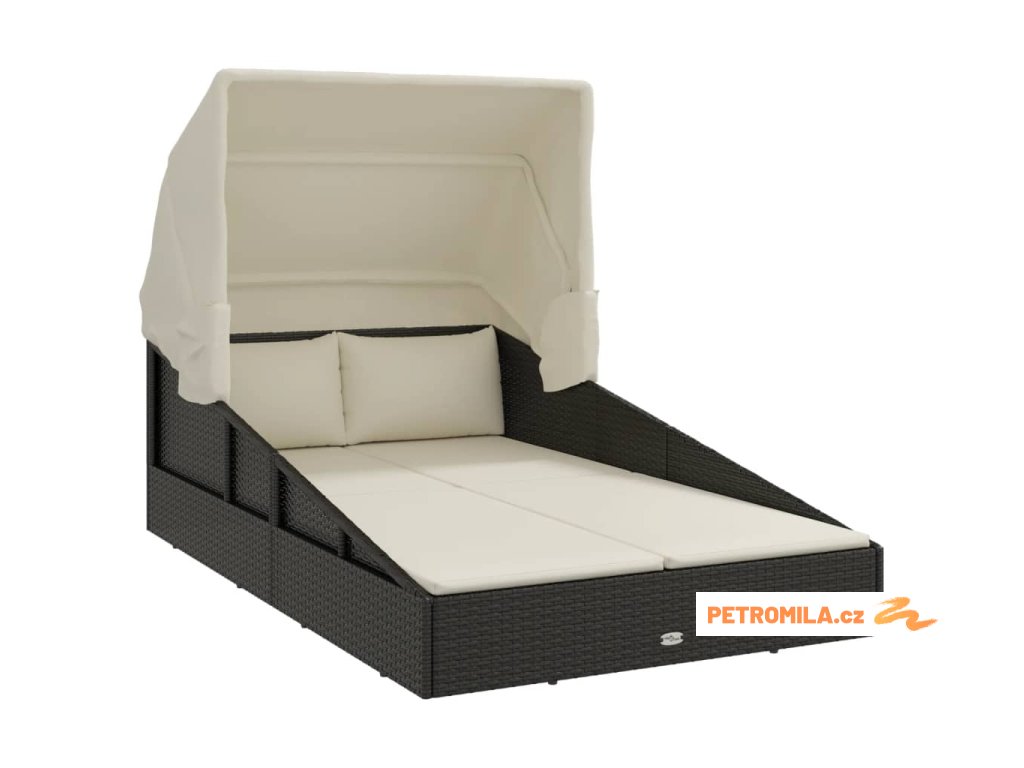 Lehátko se skládací střechou černé 200 x 114 x 128 cm polyratan