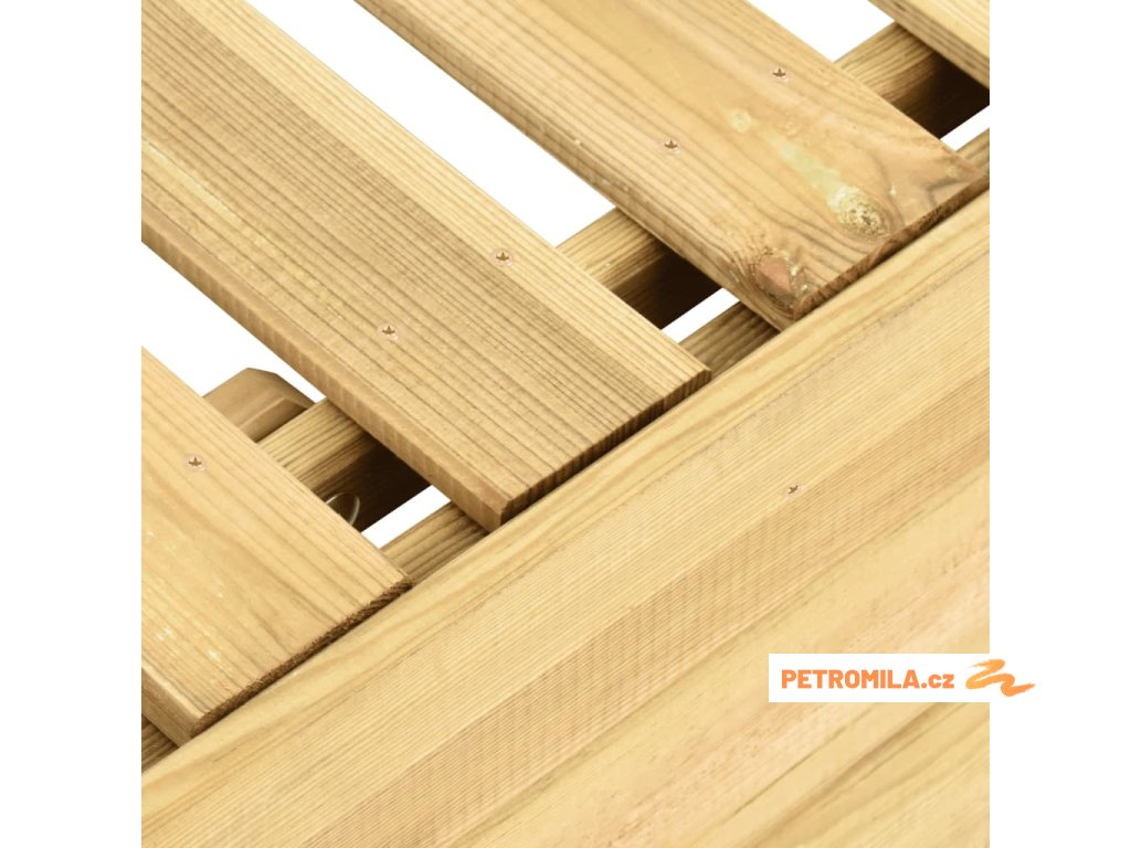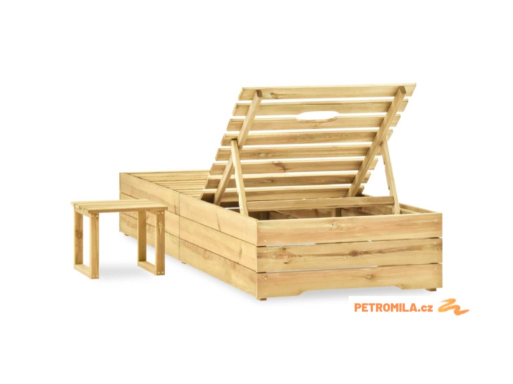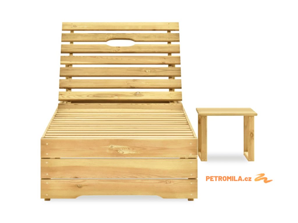 Lehátko je zhotovené z masivní impregnované borovice, takže výborně odolává klimatickým vlivům, má dlouhou životnost a dá se snadno čistit vlhkým hadříkem. Výšku opěradla si můžete nastavit dle vlastní potřeby, abyste se mohli co nejpohodlněji uvelebit. Lehátko efektivně kombinuje styl, odolnost a pohodlné používání a vaše venkovní bydlení zkrášlí svým nadčasovým designem. Je doplněné dřevěným stolkem, na který si můžete odkládat vaše telefony, sluneční brýle, nápoje a další drobnosti v dosahu ruky.
