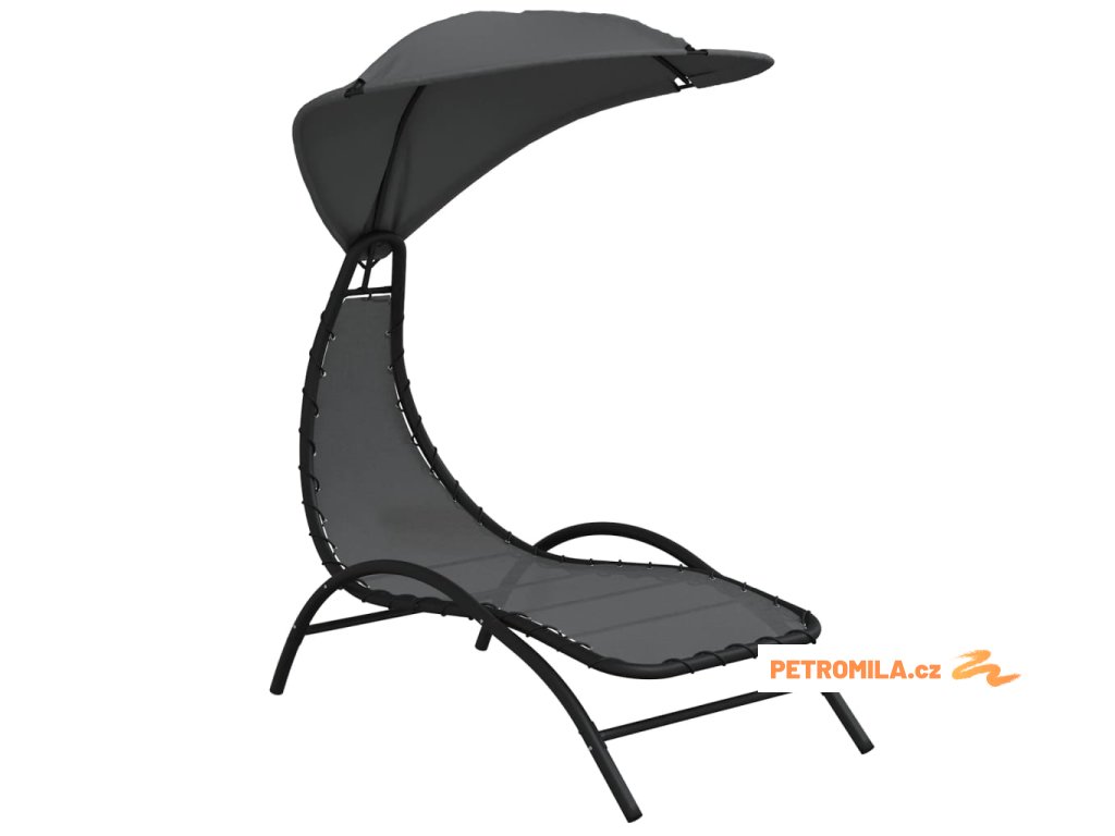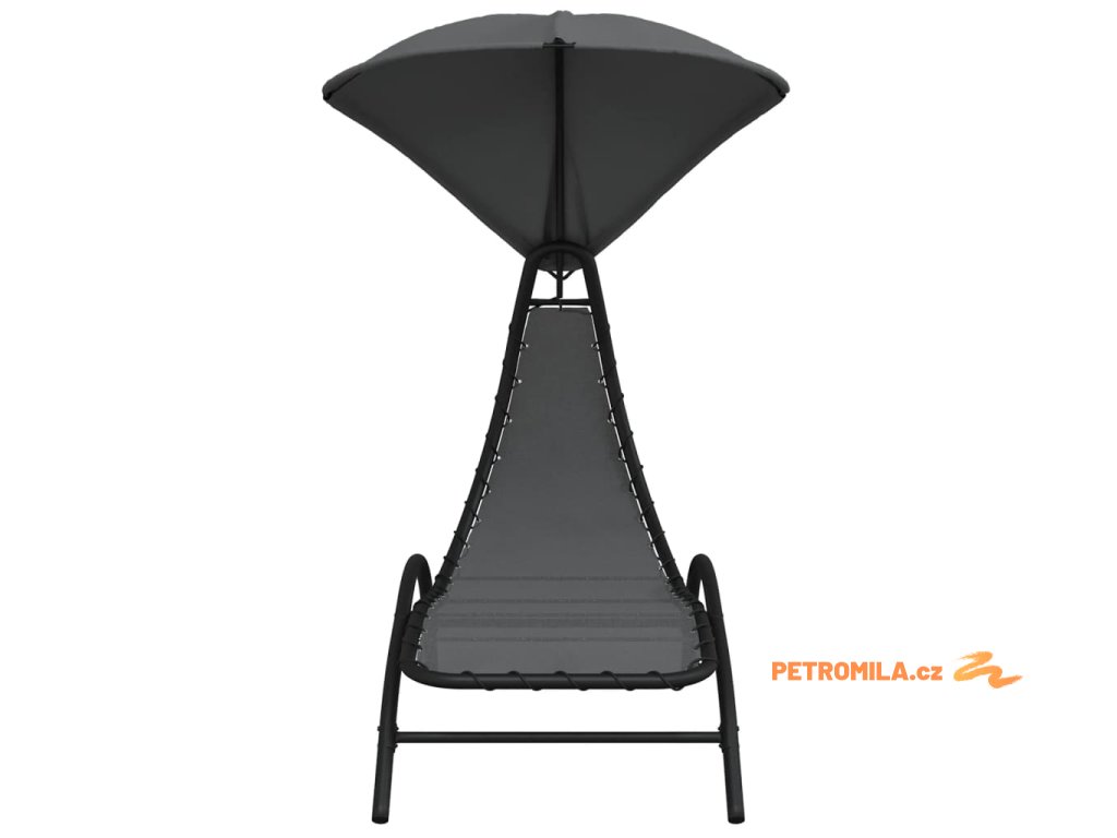 Lehátko se stříškou tmavě šedé 167 x 80 x 195 cm tkanina a ocel