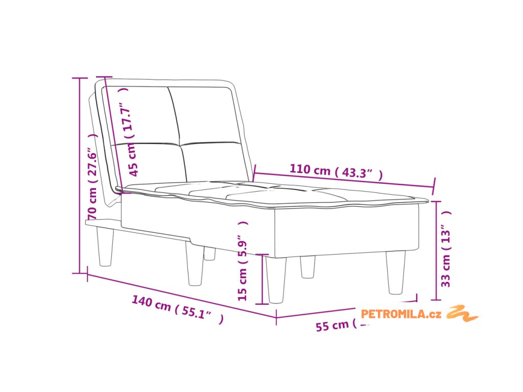 - Celkové rozměry (v nesklopené poloze): 55 x 140 x 70 cm (Š x H x V)