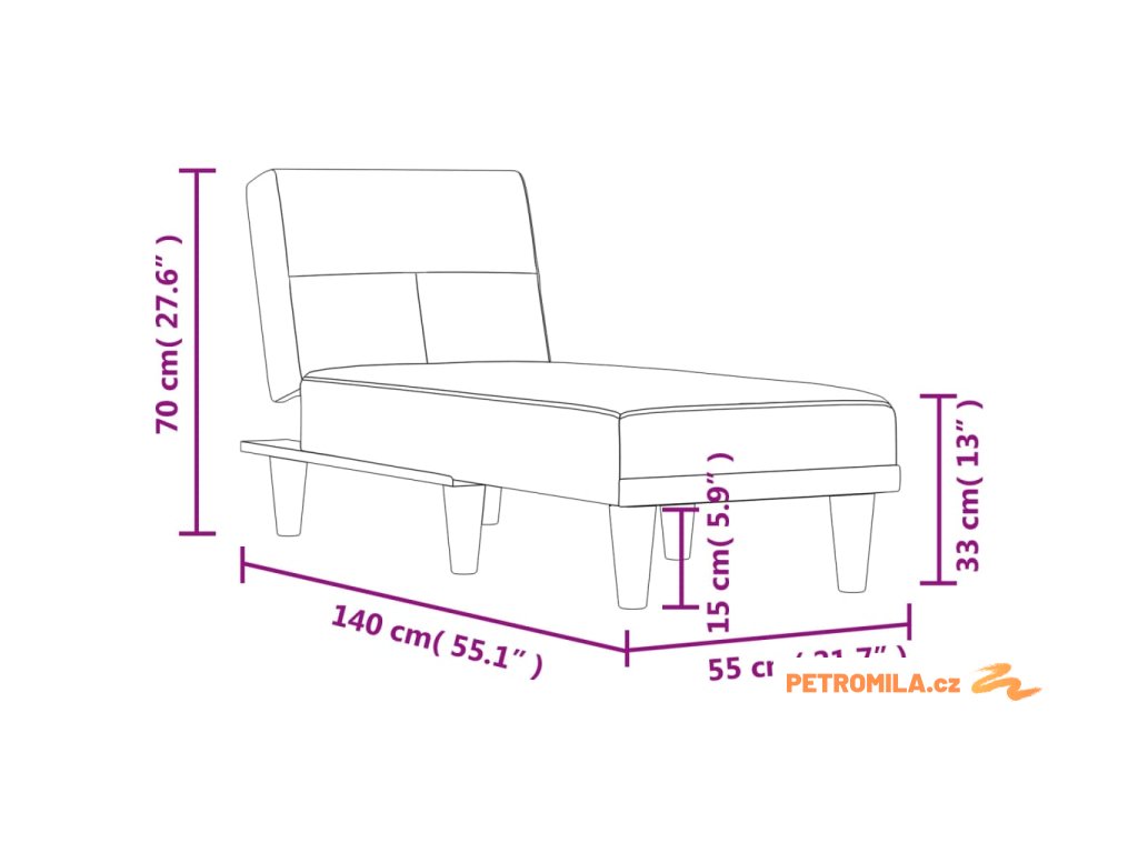 - Celkové rozměry (v nesklopené poloze): 55 x 140 x 70 cm (Š x H x V)