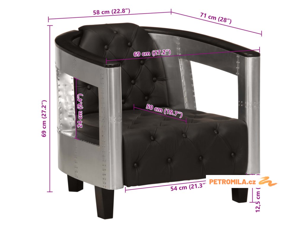 Křeslo je vyrobeno z kvalitní pravé kůže, a tak vašemu interiéru dodá nejen na luxusu, ale také vám poskytne značné pohodlí. Hliníkové područky přispívají k robustnosti křesla a spolu se silně polstrovaným čalouněním vám nabízí mimořádně pohodlné sezení.