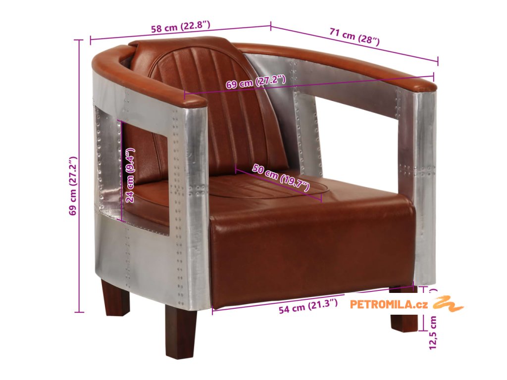 Křeslo je vyrobeno z kvalitní pravé kůže, a tak vašemu interiéru dodá nejen na luxusu, ale také vám poskytne značné pohodlí. Hliníkové područky přispívají k robustnosti křesla a spolu se silně polstrovaným čalouněním vám nabízí mimořádně pohodlné sezení.