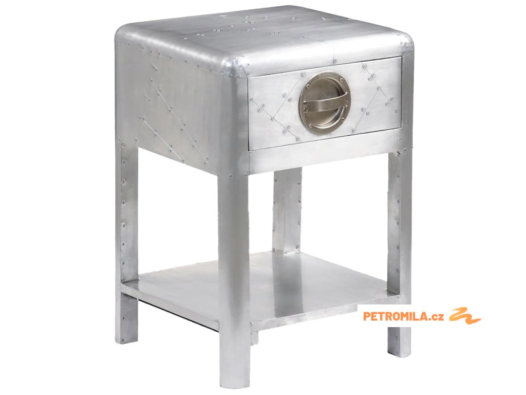 Letecký hliníkový vintage odkládací stolek s 1 zásuvkou