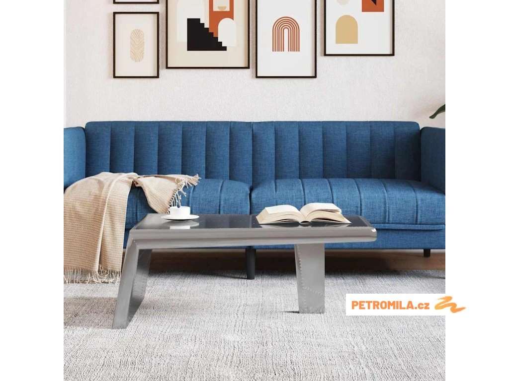 Konferenční stolek ve stylu letadla je vyroben z vysoce kvalitního hliníku. Je odolný, lehký a snadno se udržuje. Kovová konstrukce a vzorované nýtování dodávají leteckému stolku industriální vzhled. Jeho pevná horní deska poskytuje stabilní povrch, na který můžete pokládat nápoje, košíky s ovocem nebo dekorativní předměty. Výrobek je již sestaven; další montáž není nutná.