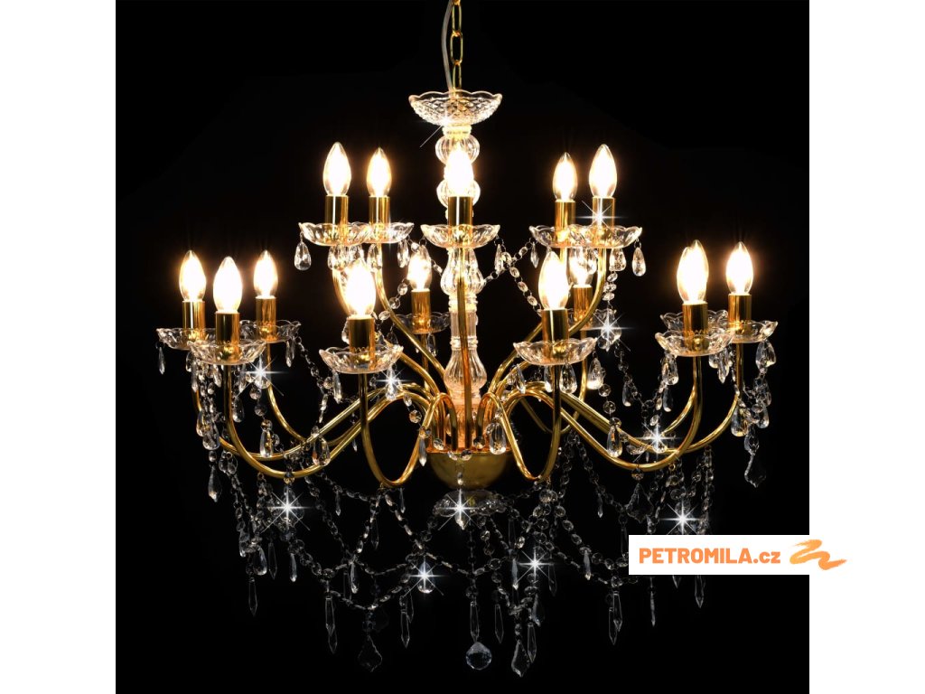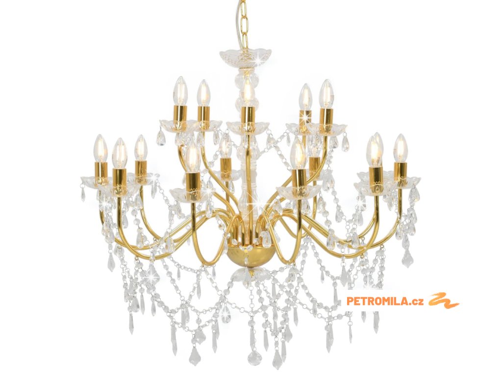 Lustr 2patrový zlatý 15 x žárovky E14