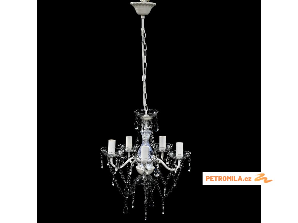 Tento lustr má zručně zhotovený středový sloupek z křišťálového skla se zakřivenými akrylovými rameny, svícny a korálky ve tvaru kapek. Můžete použít jak žárovky, tak LED diody.
