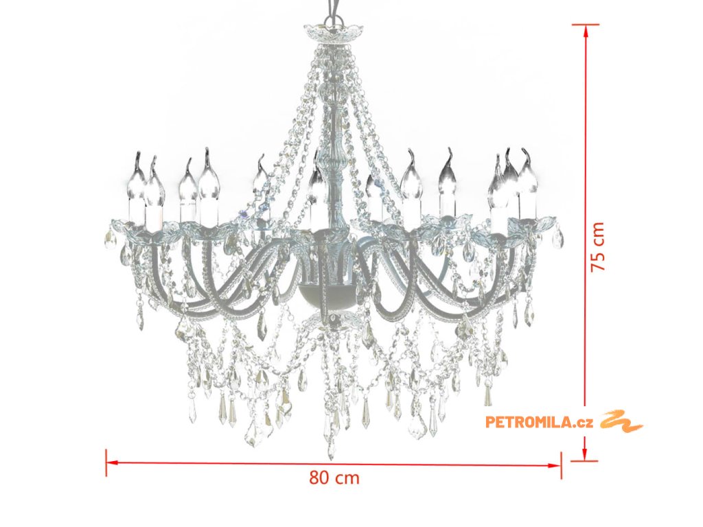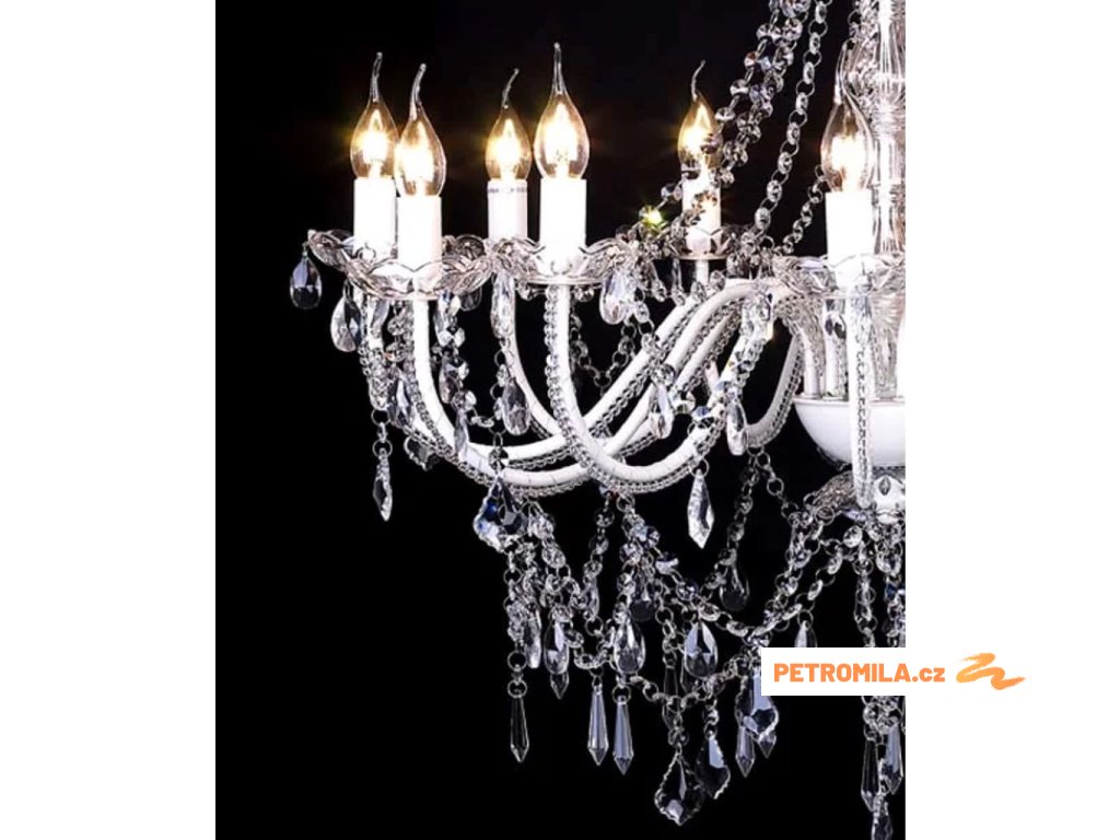 Tento úžasný lustr s 1600 různými křišťálovými skly a 12 svícemi je celý z kovu a křišťálového skla (neobsahuje levné kusy a kamínky), což mu dodává jedinečnou eleganci. Toto trendy závěsné svítidlo má majestátní křišťálový design. Vysoce kvalitní bezbarvé sklo je opravdu čiré a září spoustou odlesků (odráží i jiné světelné zdroje). Jeho spektrum hraje nádhernými barvami.Tento překrásný lustr je okouzlující díky svým 12 světelným zdrojům a leštěným hranám, které vytvářejí magický třpyt příjemného teplého světla. Upoutá pozornost v jakékoli místnosti a hodí se pro soukromé i komerční účely.