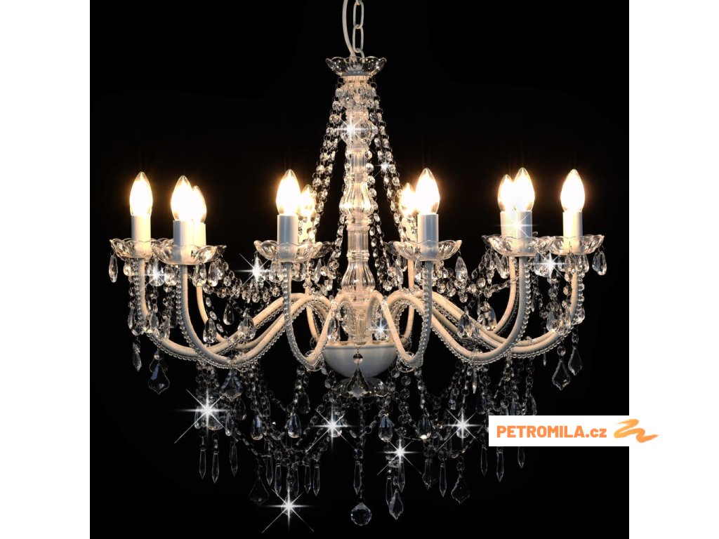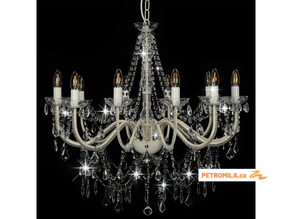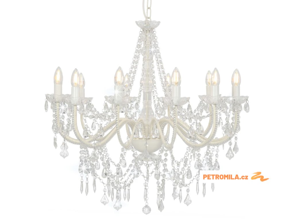Lustr s korálky bílý 12 x žárovky E14
