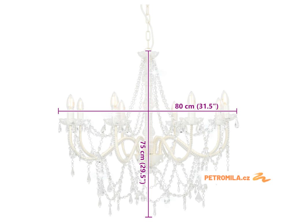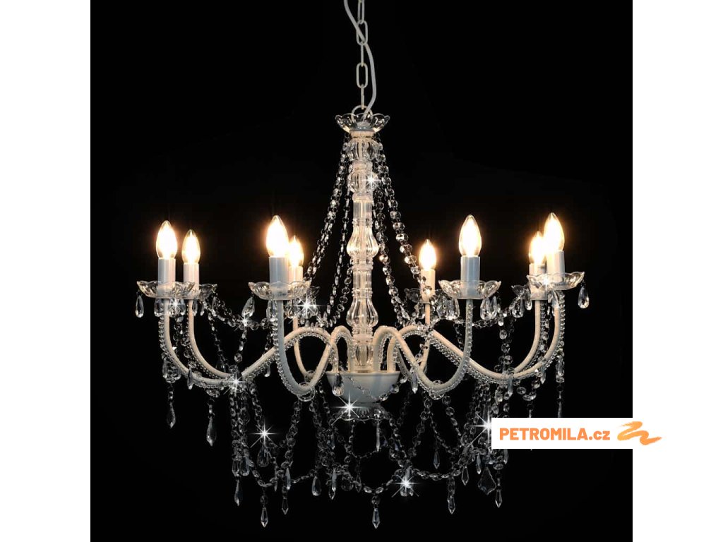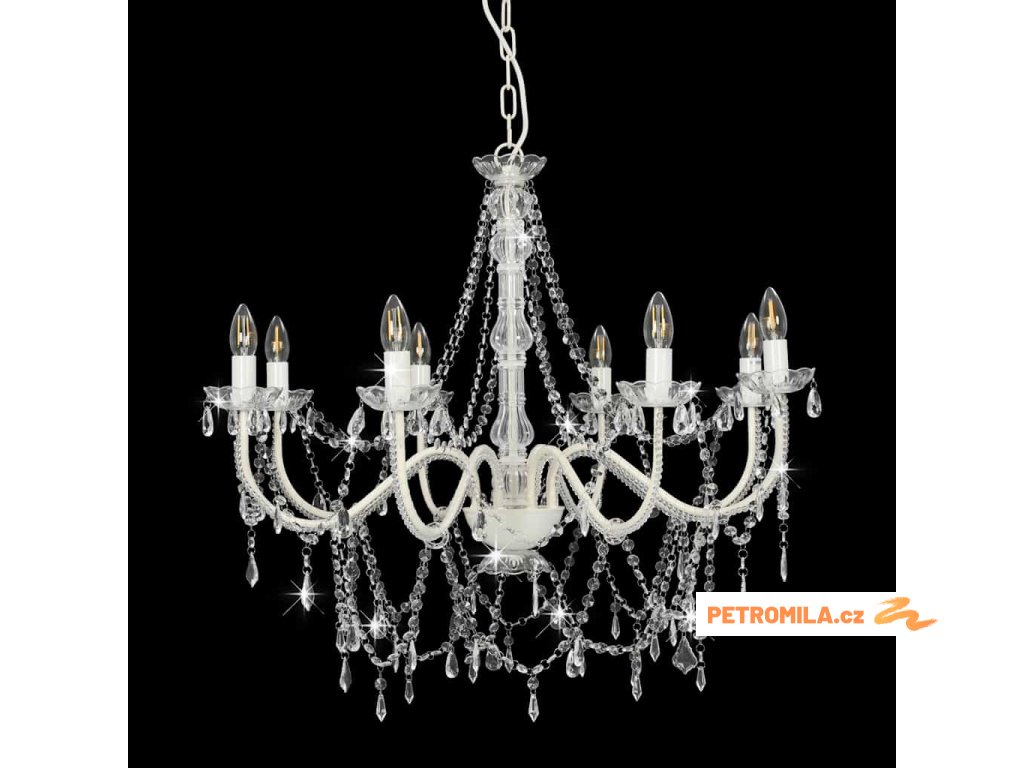 Lustr s korálky bílý 8 x žárovky E14