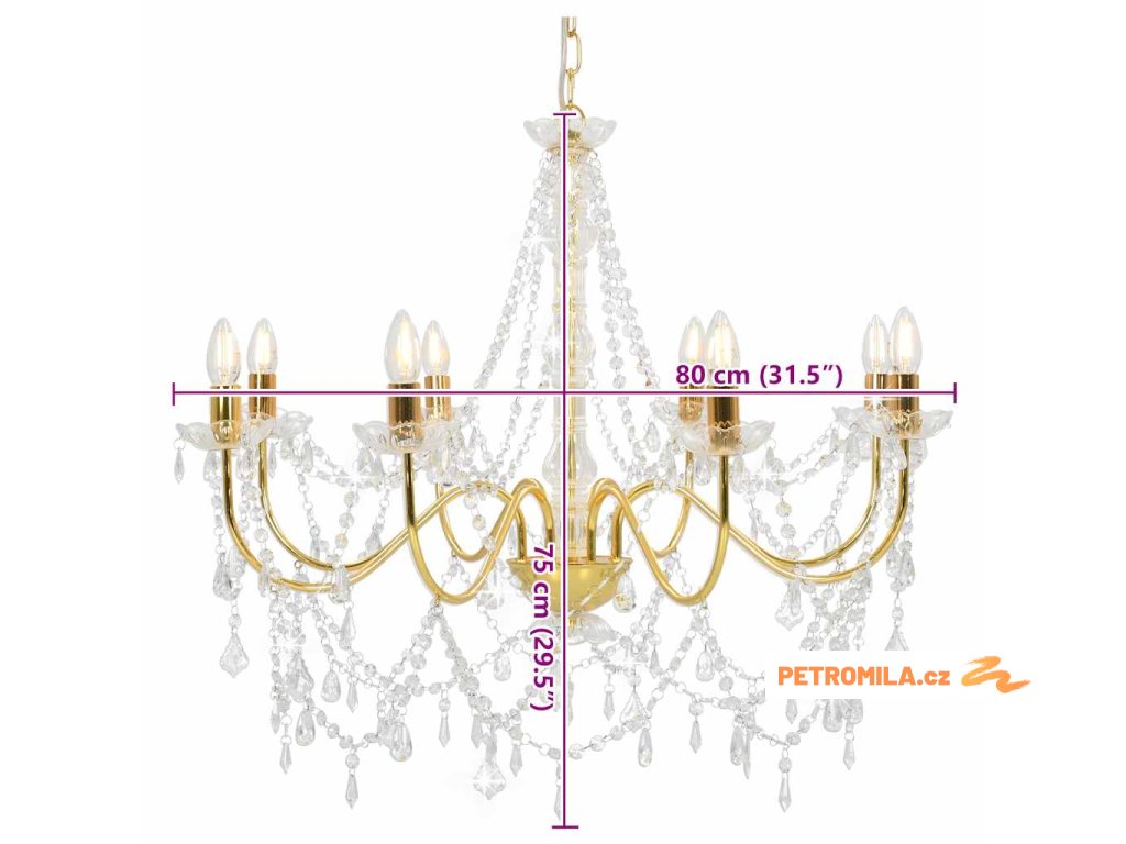 - Barva: zlatá (základna svítidla) + průhledná (korálky)