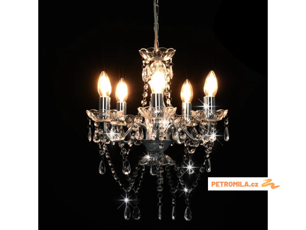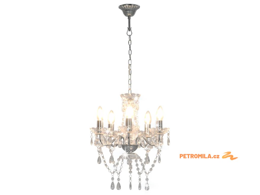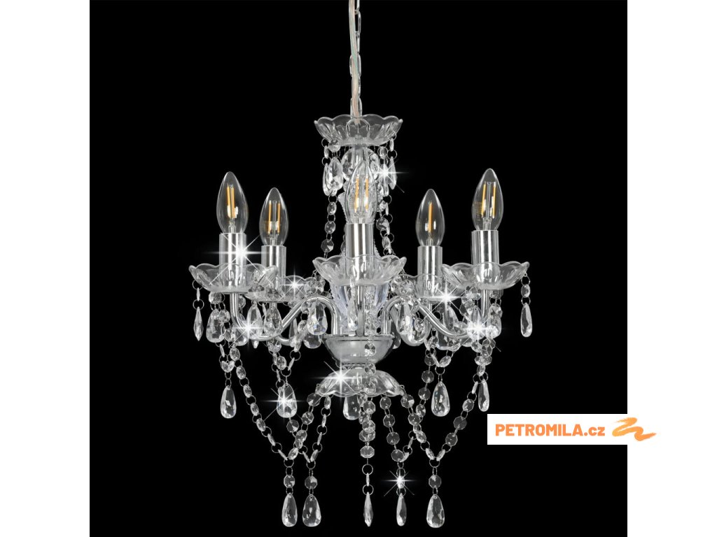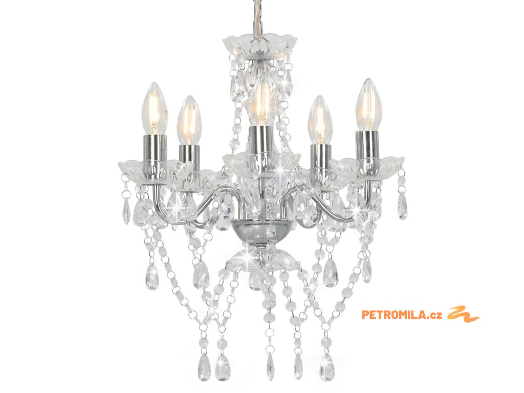 Lustr s křišťálovými korálky stříbrný kulatý 5 x E14