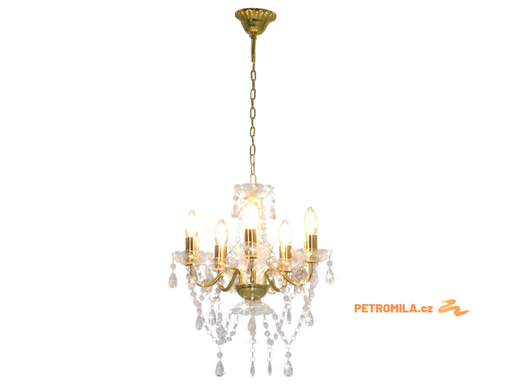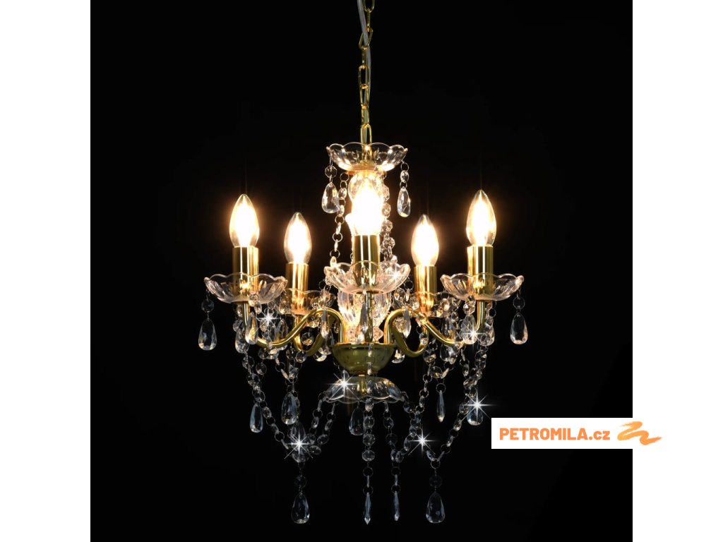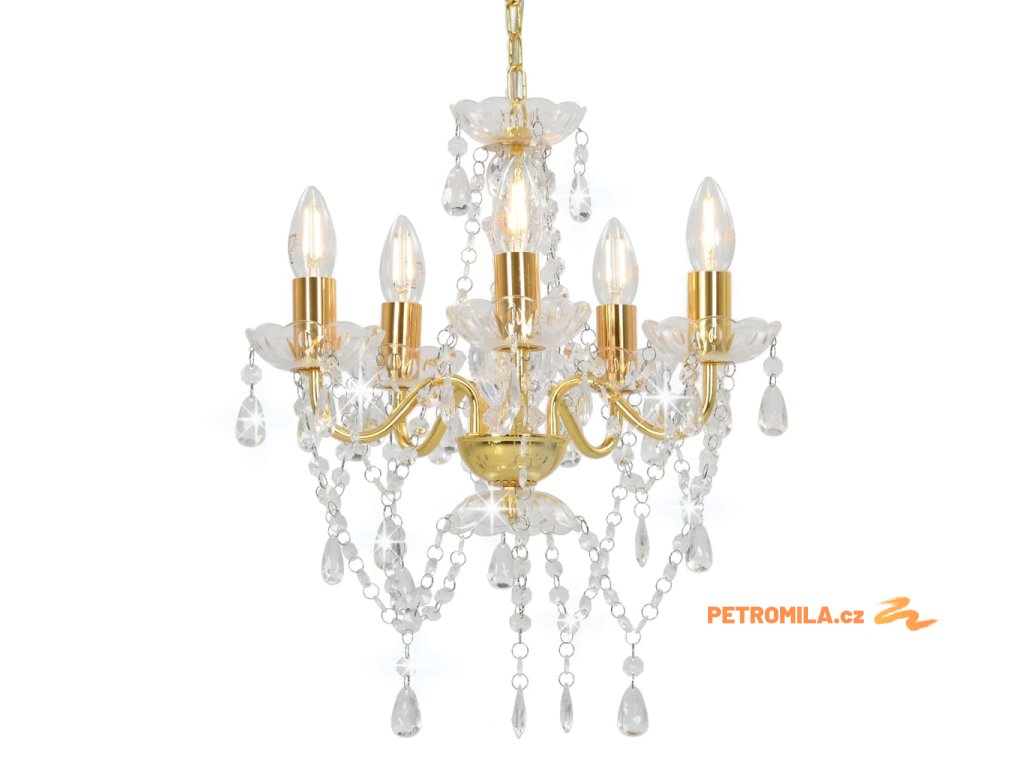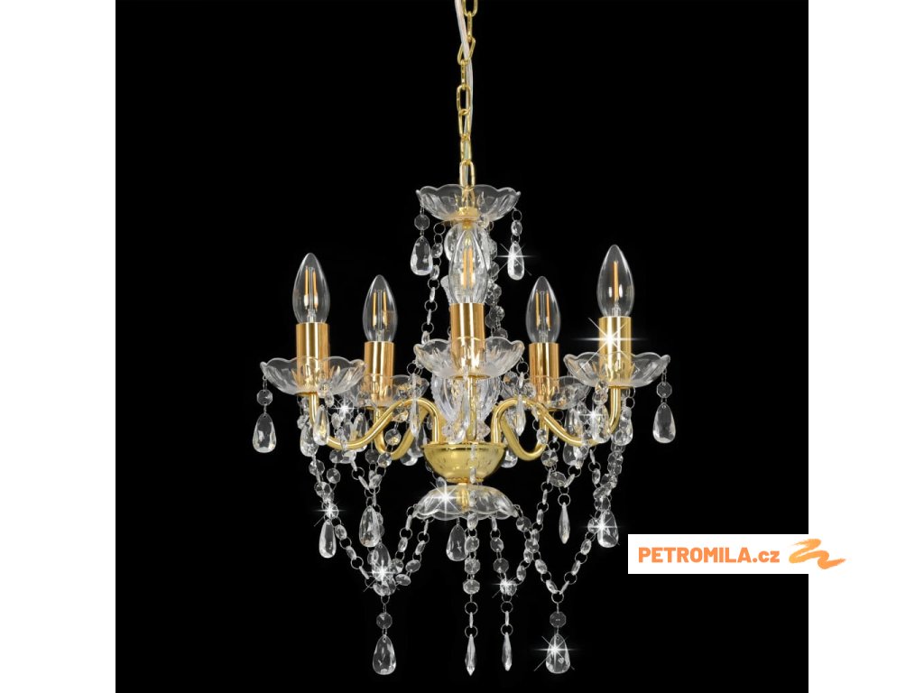 Lustr s křišťálovými korálky zlatý kulatý 5 x E14