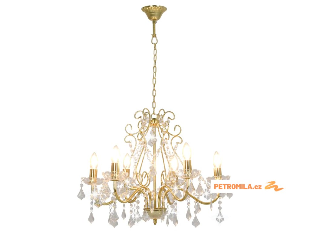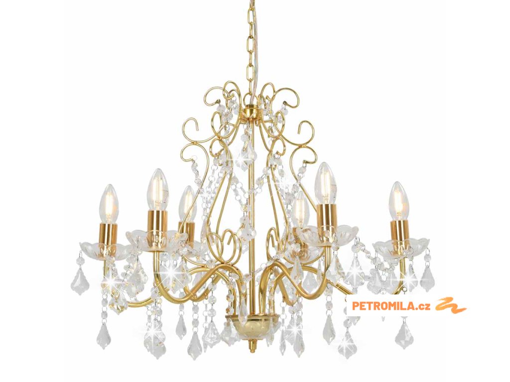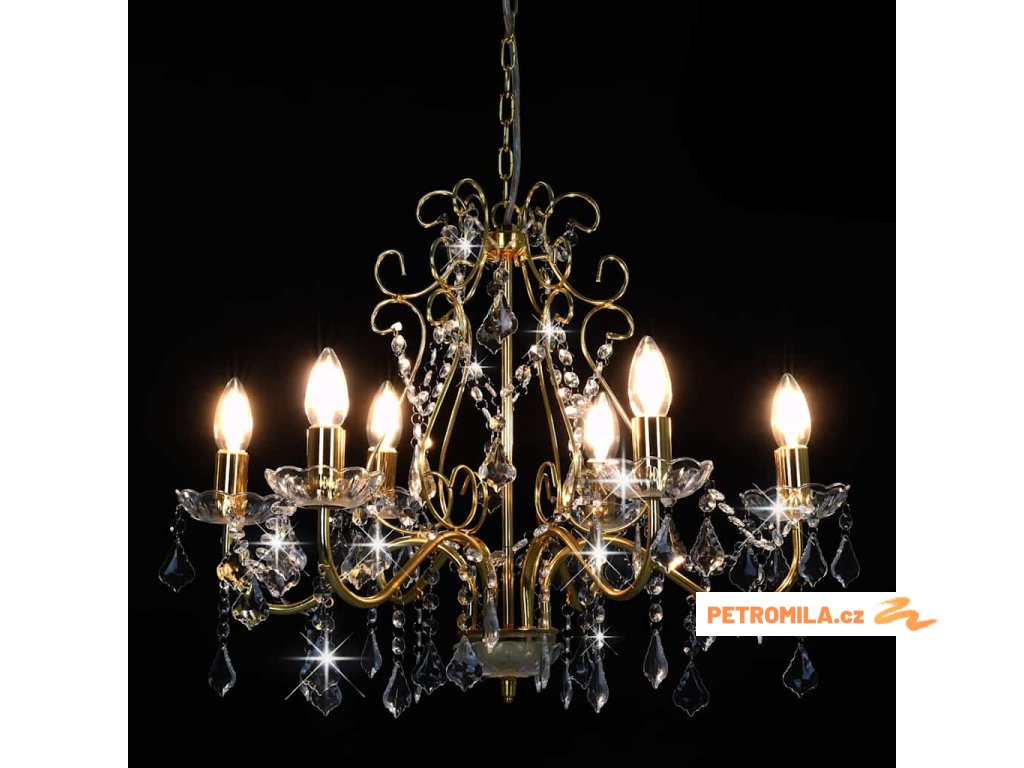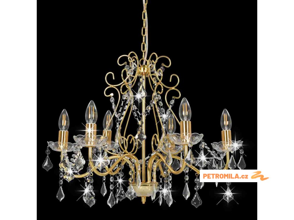 Lustr s křišťálovými korálky zlatý kulatý 6 x E14