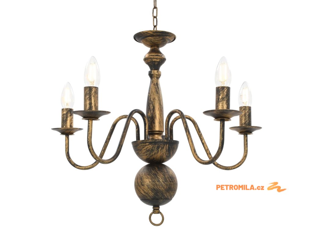 Lustr s patinou černý 5 x žárovka E14