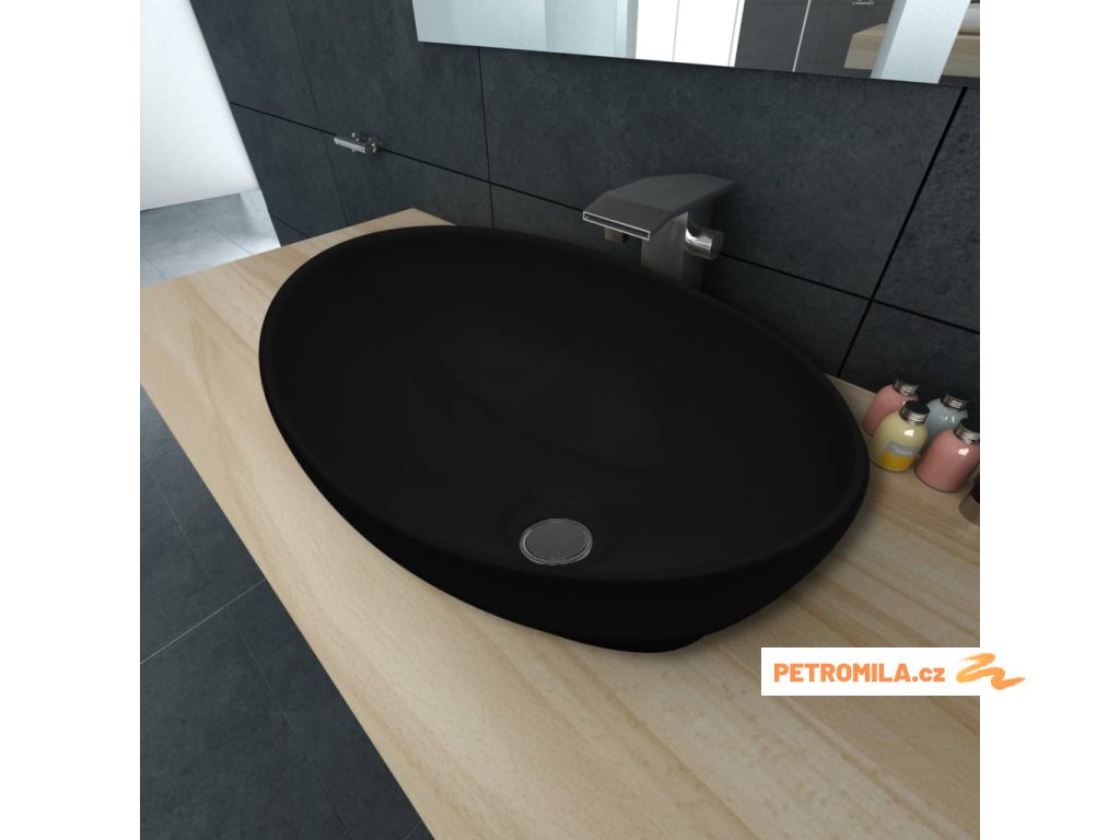 Luxusní keramické oválné umyvadlo - 40 x 33 cm - černé