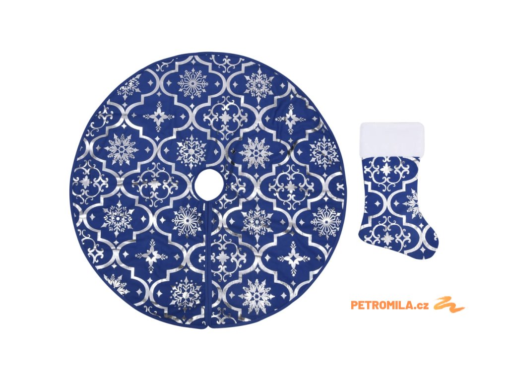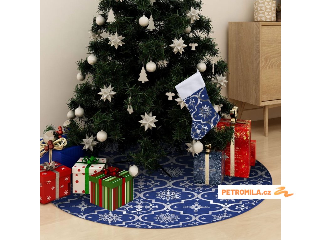 Luxusní podložka pod vánoční stromek s punčochou modrá 90 cm