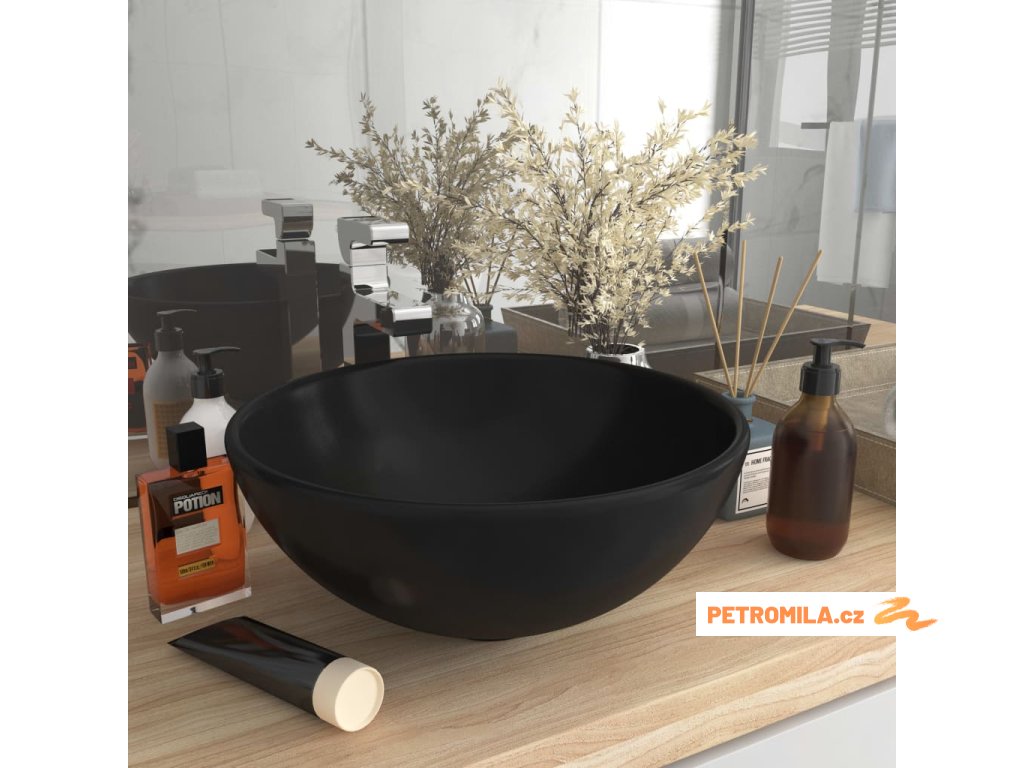 Luxusní umyvadlo kulaté matné černé 32,5 x 14 cm keramické