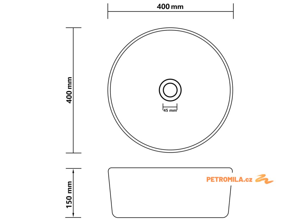 Odtokový otvor má průměr 4,5 cm. Upozorňujeme, že vodovodní baterie není součástí balení.
