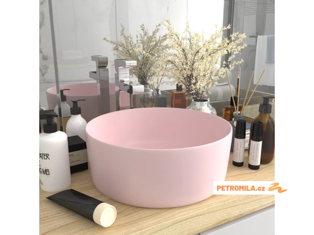 Luxusní umyvadlo kulaté matné růžové 40 x 15 cm keramické
