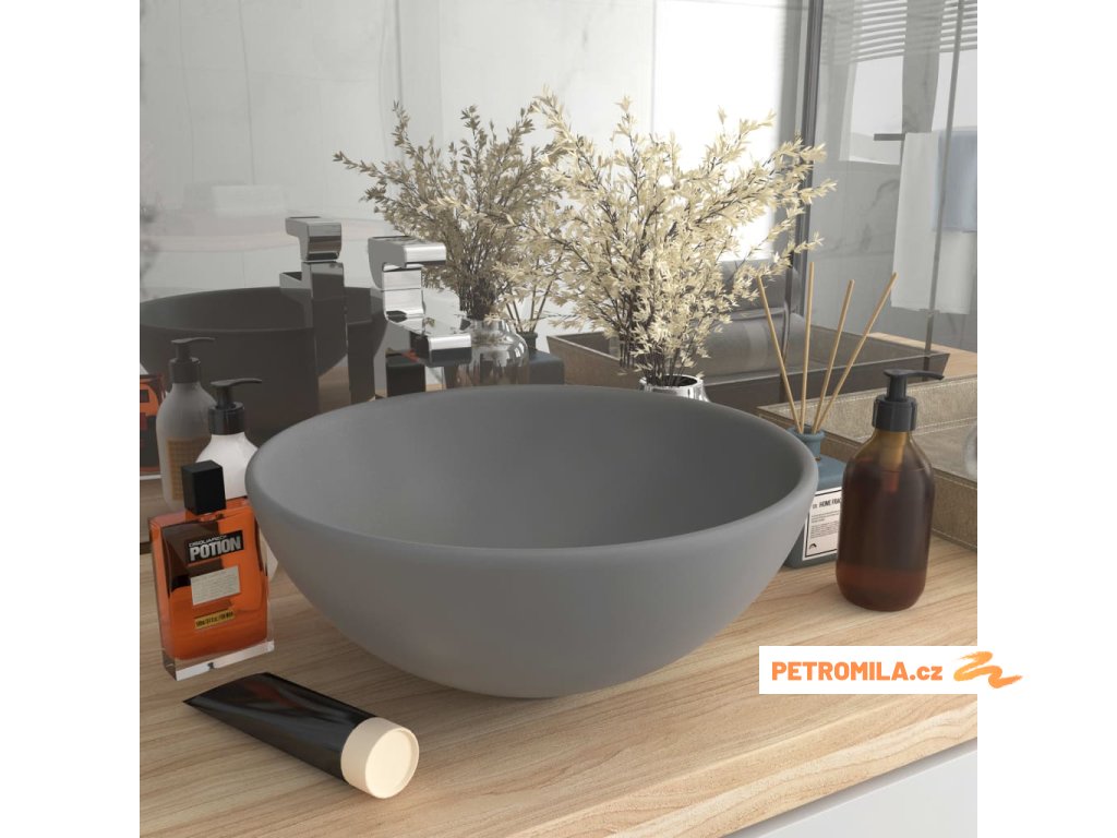 Luxusní umyvadlo kulaté matné světle šedé 32,5x14 cm keramické