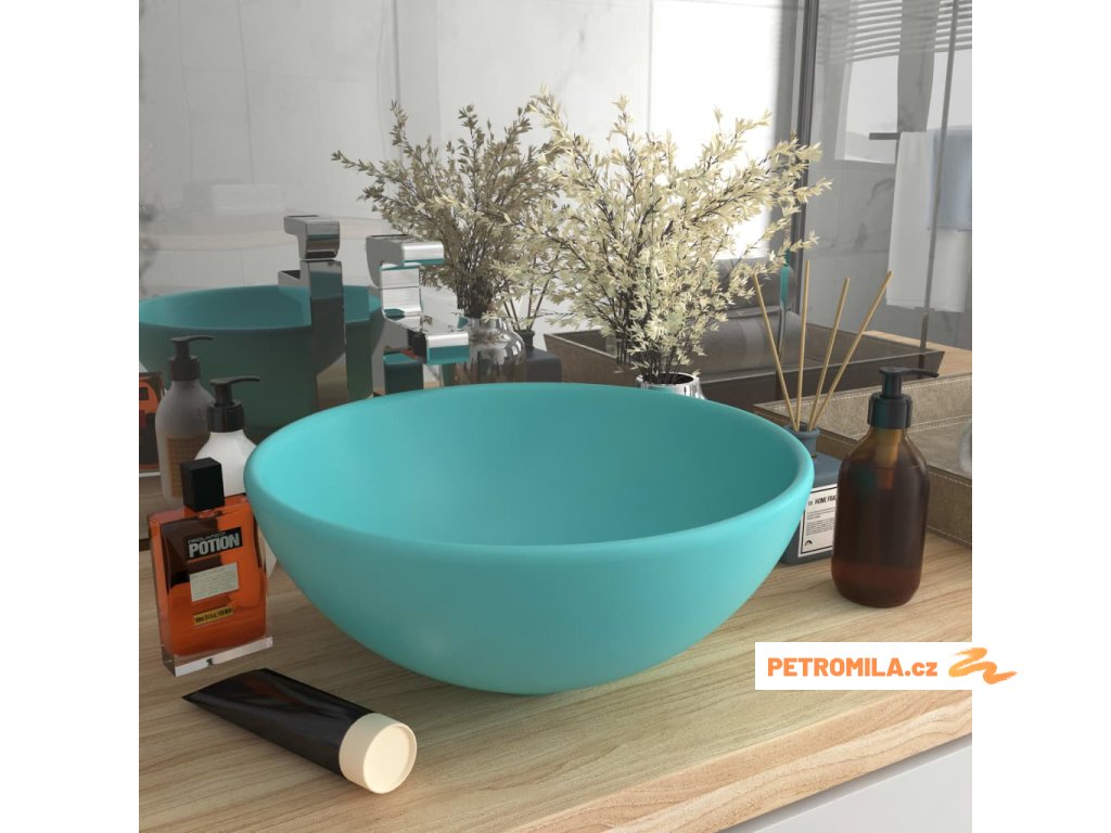 Luxusní umyvadlo kulaté matné světle zelené 32,5x14cm keramické