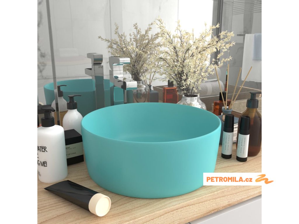 Luxusní umyvadlo kulaté matné světle zelené 40x15 cm keramické