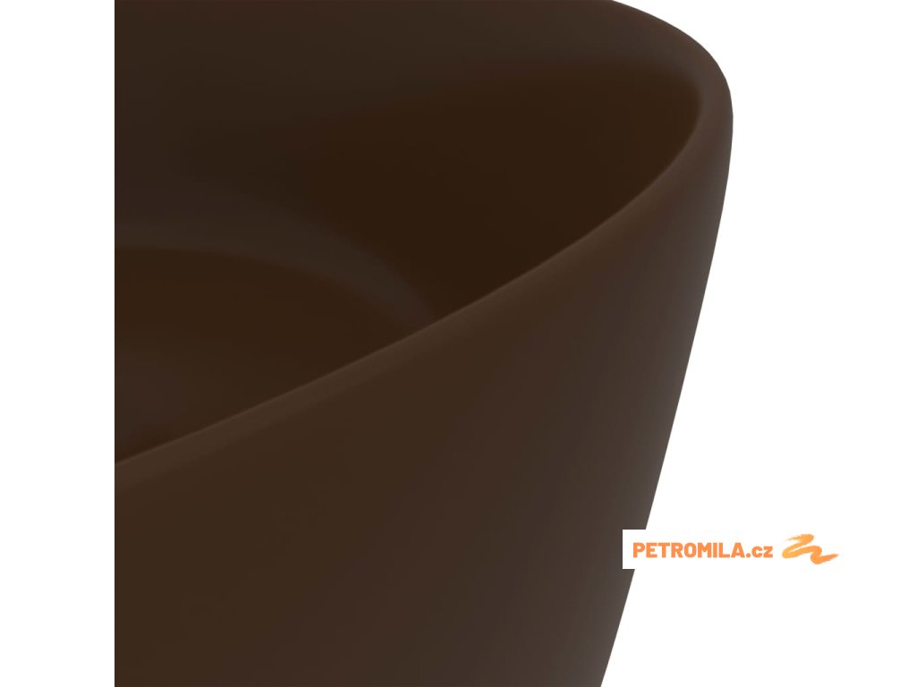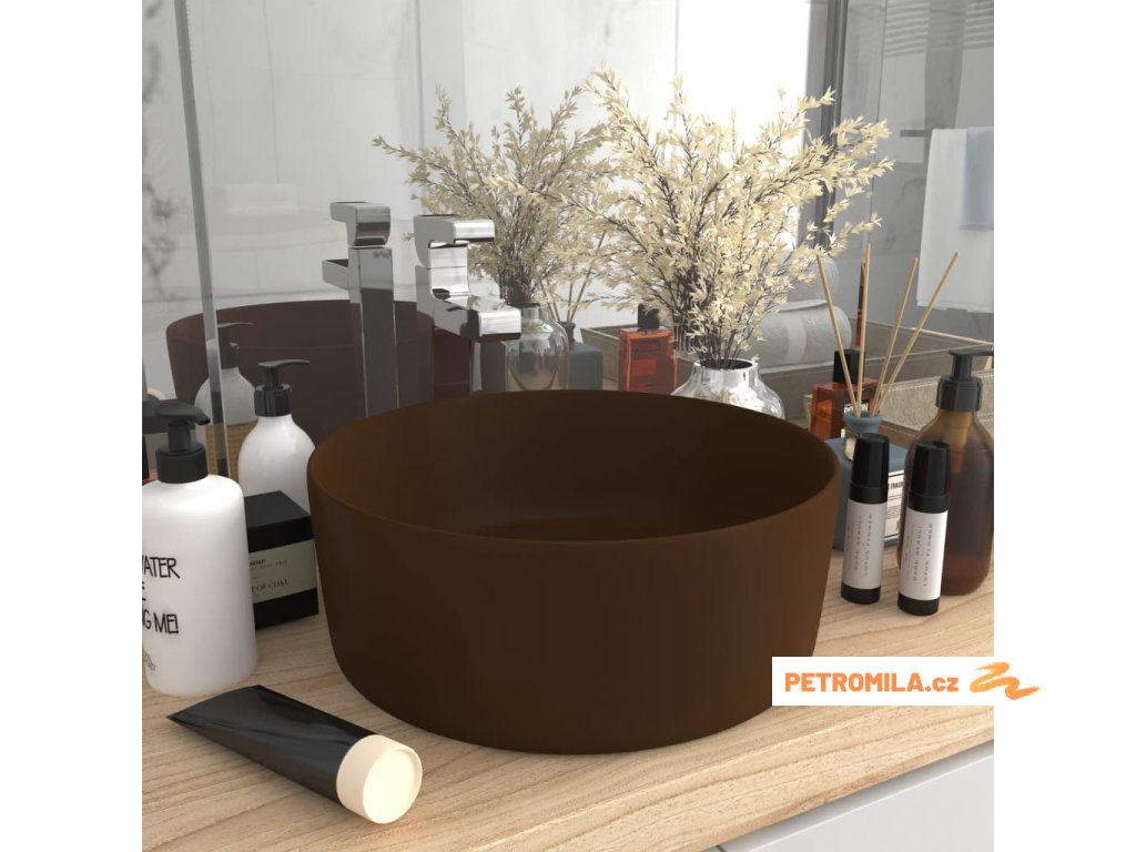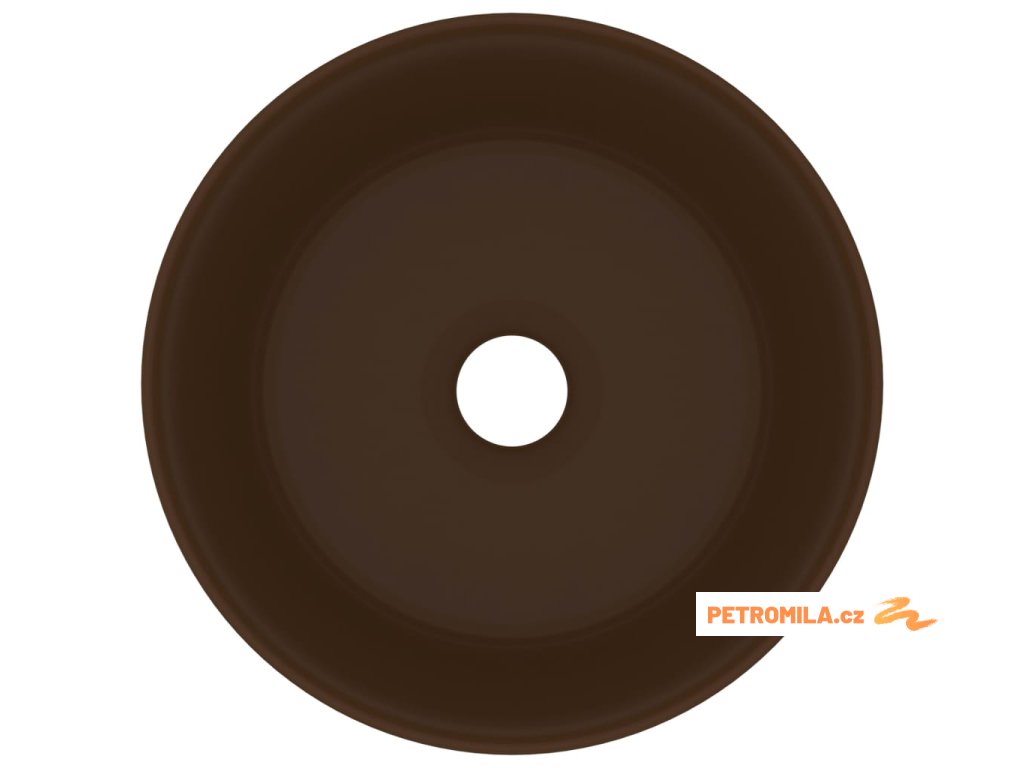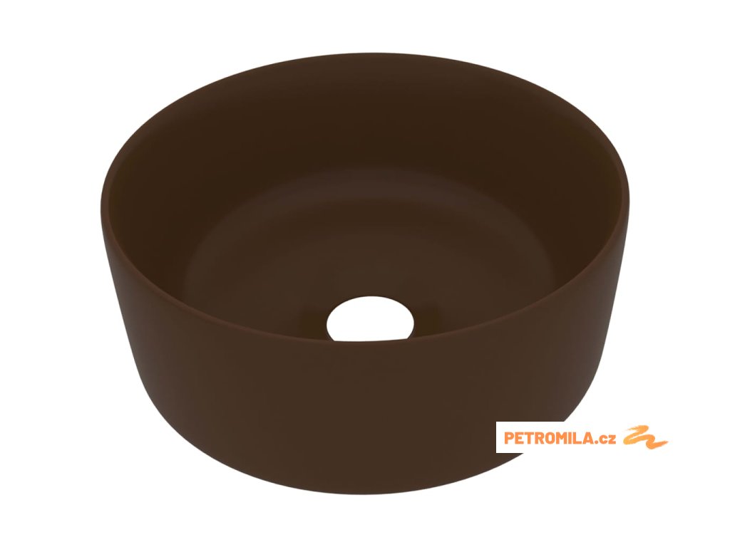 Luxusní umyvadlo kulaté matné tmavě hnědé 40 x 15 cm keramické