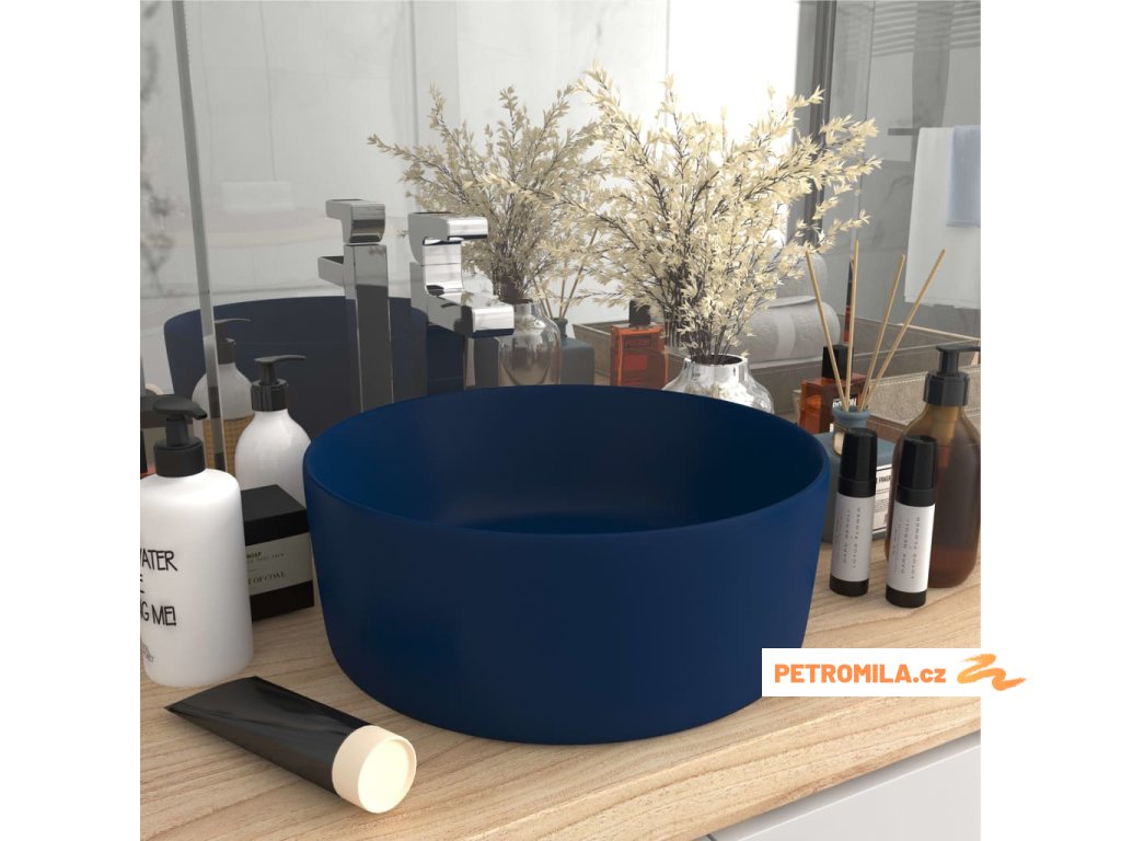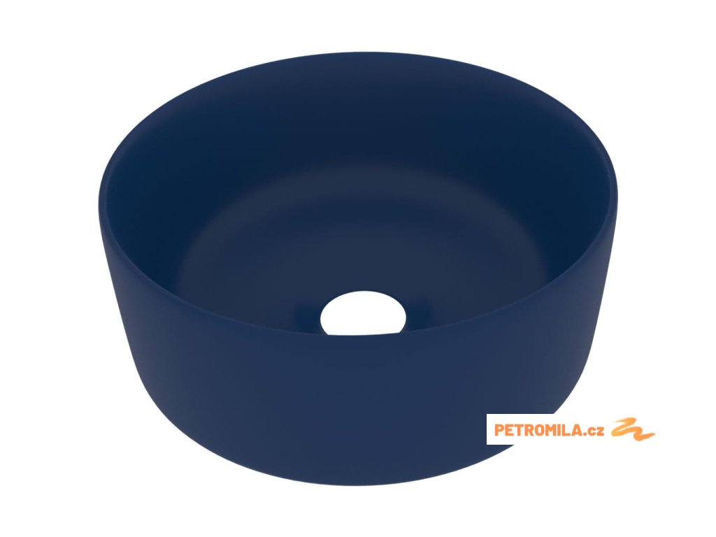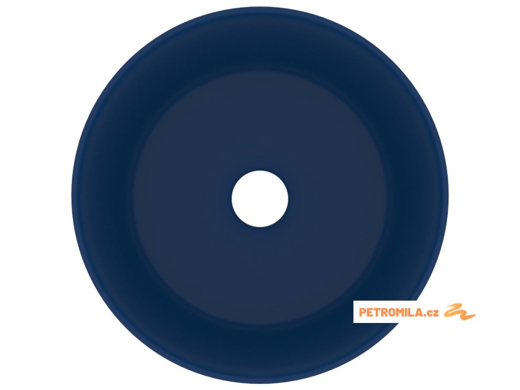 Luxusní umyvadlo kulaté matné tmavě modré 40 x 15 cm keramické