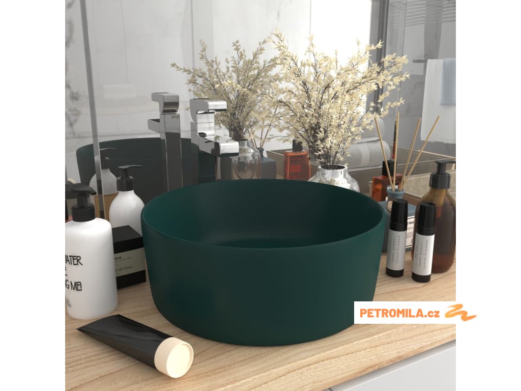 Luxusní umyvadlo kulaté matné tmavě zelené 40 x 15 cm keramické