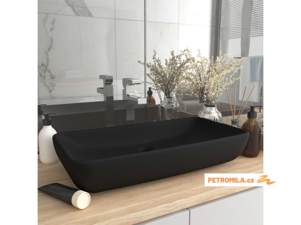 Luxusní umyvadlo obdélníkové matné černé 71 x 38 cm keramické