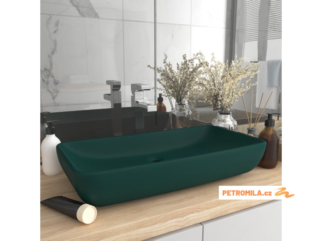 Luxusní umyvadlo obdélníkové matné tmavě zelené 71 x 38 cm