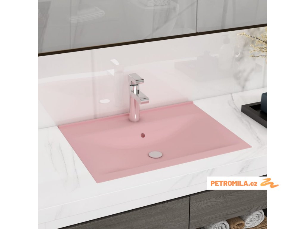 Luxusní umyvadlo otvor na baterii matné růžové 60x46cm keramika