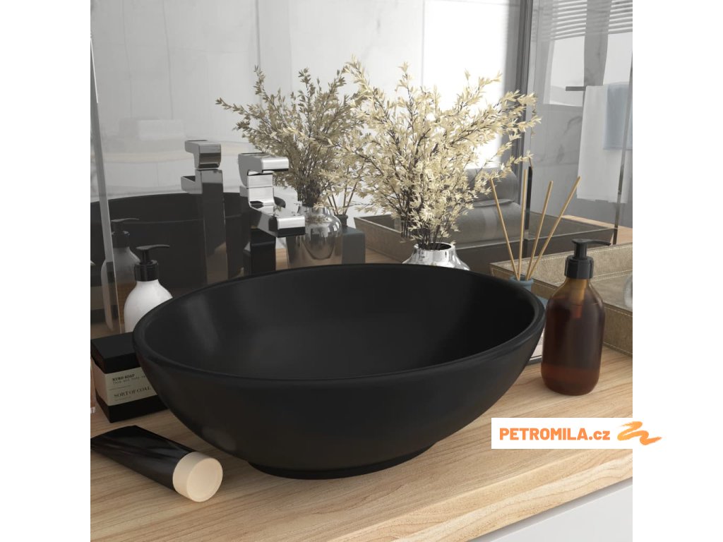 Luxusní umyvadlo oválné matné černé 40 x 33 cm keramické