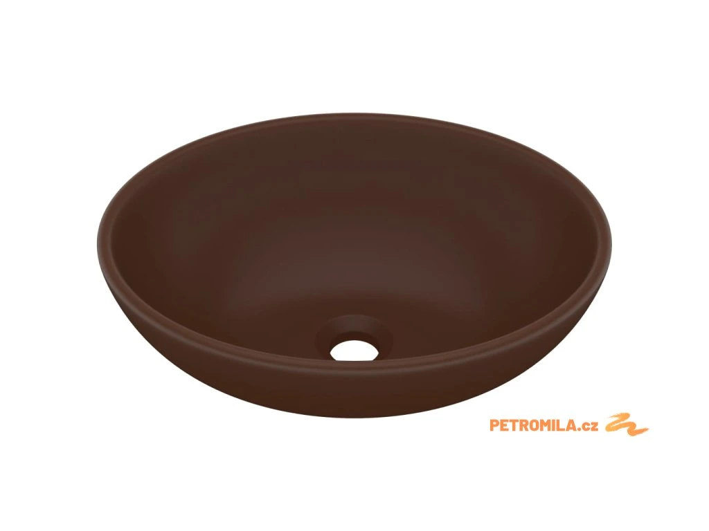 Luxusní umyvadlo oválné matné tmavě hnědé 40 x 33 cm keramické