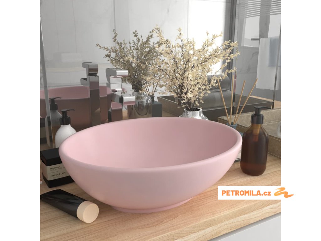 Luxusní umyvadlo oválného tvaru matně růžové 40x33 cm keramika