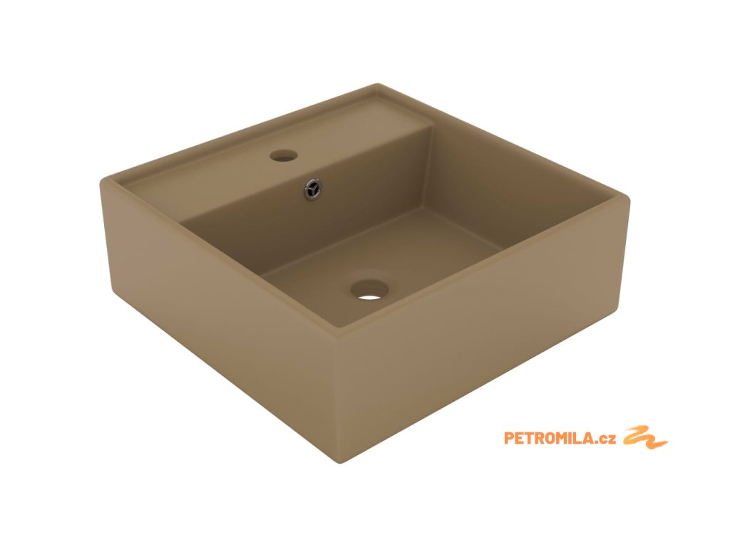 Luxusní umyvadlo přepad čtvercové matné krémové 41 x 41 cm