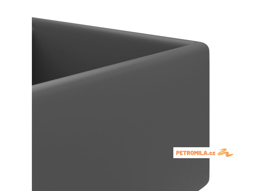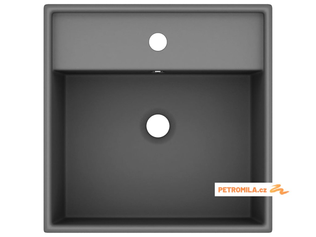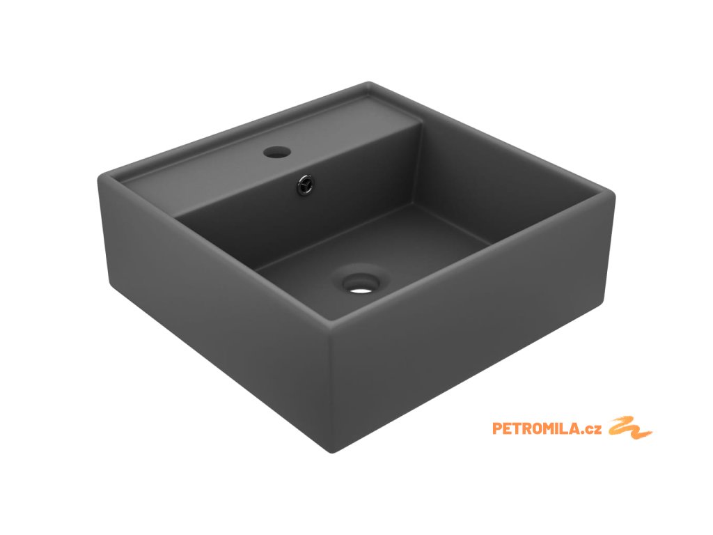 Luxusní umyvadlo přepad čtvercové matné tmavě šedé 41x41 cm