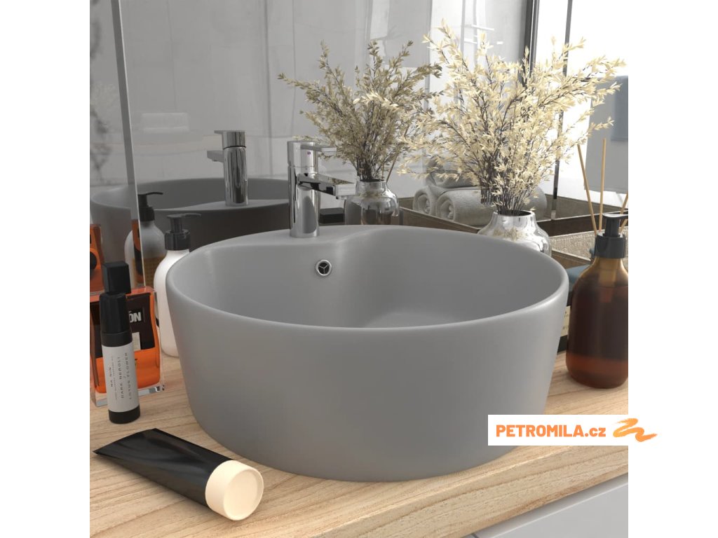Luxusní umyvadlo přepad matné světle šedé 36 x 13 cm keramické