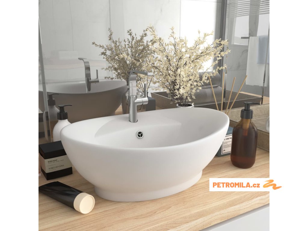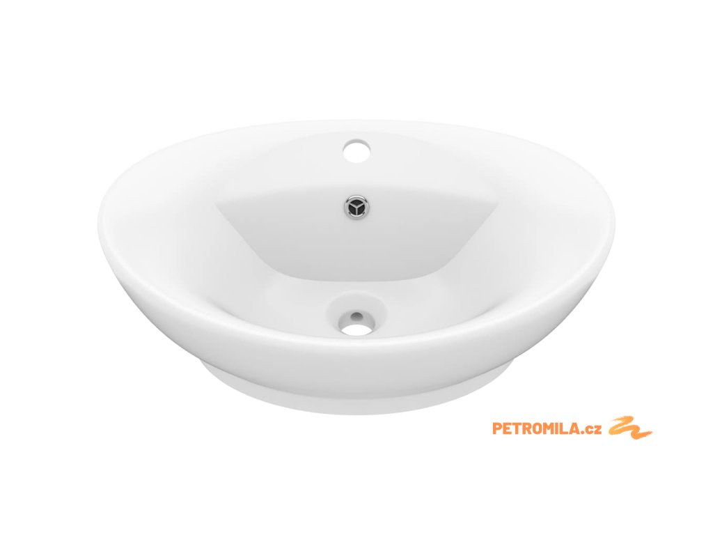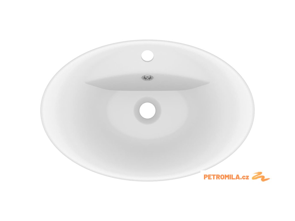 Luxusní umyvadlo přepad oválné matné bílé 58,5 x 39 cm keramika