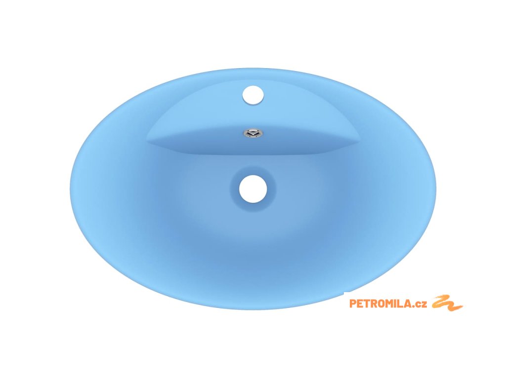 Luxusní umyvadlo přepad oválné světle modré 58,5x39 cm keramika